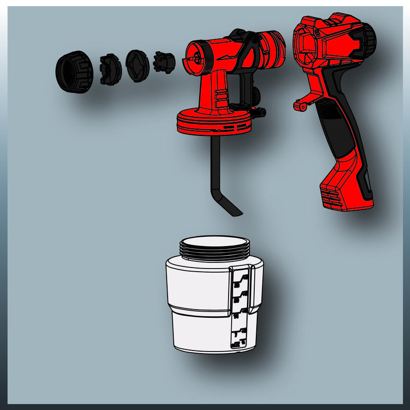 Elektrický systém pro nástřik barev TC-SY 700 S je polostacionární systém pro střední až velké pracovní plochy a je vhodný pro laky, lazury a interiérové barvy. Ramenní popruh a 3,5 m dlouhá vzduchová hadice zajišťují vysokou mobilitu. Systém je vhodný pro všechny kreativní a praktické projekty, při kterých se provádí aplikace laků a interiérových barev. Díky snadné manipulaci a čištění je systém pro postřik barvou ideálním nástrojem pro začátečníky i zkušené domácí kutily. Regulace množství barvy umožňuje precizní jemné vyladění pro ideální přizpůsobení nanášení barvy. Nastavitelné vzduchové víčko pro vertikální, horizontální a kruhový nástřik umožňuje pracovat flexibilně, svobodně a kreativně. Díky odnímatelné stříkací hlavici za účelem čištění všech prvků vedoucích barvu je možné předejít obtížně odstranitelnému znečištění. Přístroj umožňuje po dokončení práce snadné a důkladné vyčištění. Nekroutivá vzduchová hadice zabraňuje obtěžujícímu kroucení vzduchové hadice a usnadňuje tak manipulaci. Díky komfortnímu měkkému úchopu má postřikovač barvy bezpečné a příjemné držení. Integrovaná plocha pro navinutí hadice umožňuje flexibilitu při práci a praktické uložení hadice šetřící místo v jednom. Součástí dodávky jsou dvě trysky pro různé viskozity laků, lazur a barev, čisticí kartáč pro čištění stoupací trubky, čisticí jehla pro čištění rozstřikovací trysky a nádoba pro kontrolu viskozity, 1000ml nádoba na barvu a přesně lícující víko.