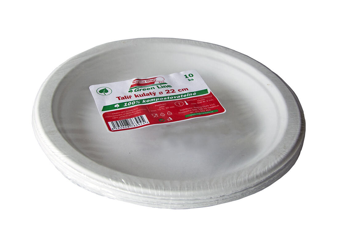 vyrobené z cukrové třtiny, bio-ekologické, odolné vůči vodě a tuku, vhodné i pro ohřev v mikrovlnné troubě, lehké, pevné, doba rozkladu 60-90 dní