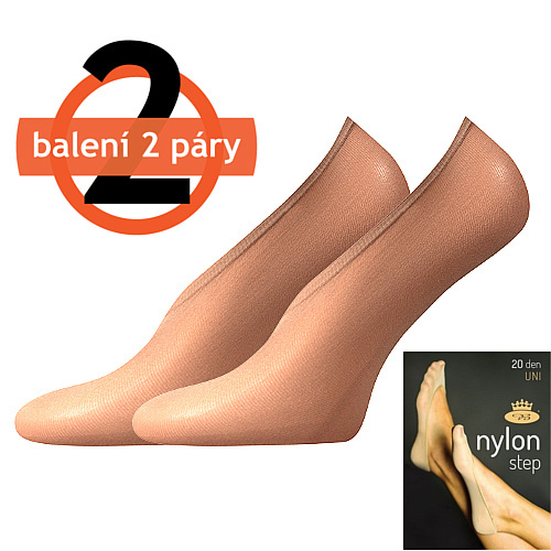 Dámské ťapky kolekce LadyB NYLON STEP v síle 20 DEN z velmi jemného úpletu. Hygienické řešení, pokud nechcete chodit v létě v obuvi “naboso”. Pružné ťapky jsou bezešvé a dobře chrání před odřeninami. Protože nepřesahují okraje obuvi, užijete je do tenisek, mokasín nebo espadrilek, ale i další nízké obuvi. Nenápadné ťapky doporučujeme na jarní a letní období. V praktickém balení 2 párů.