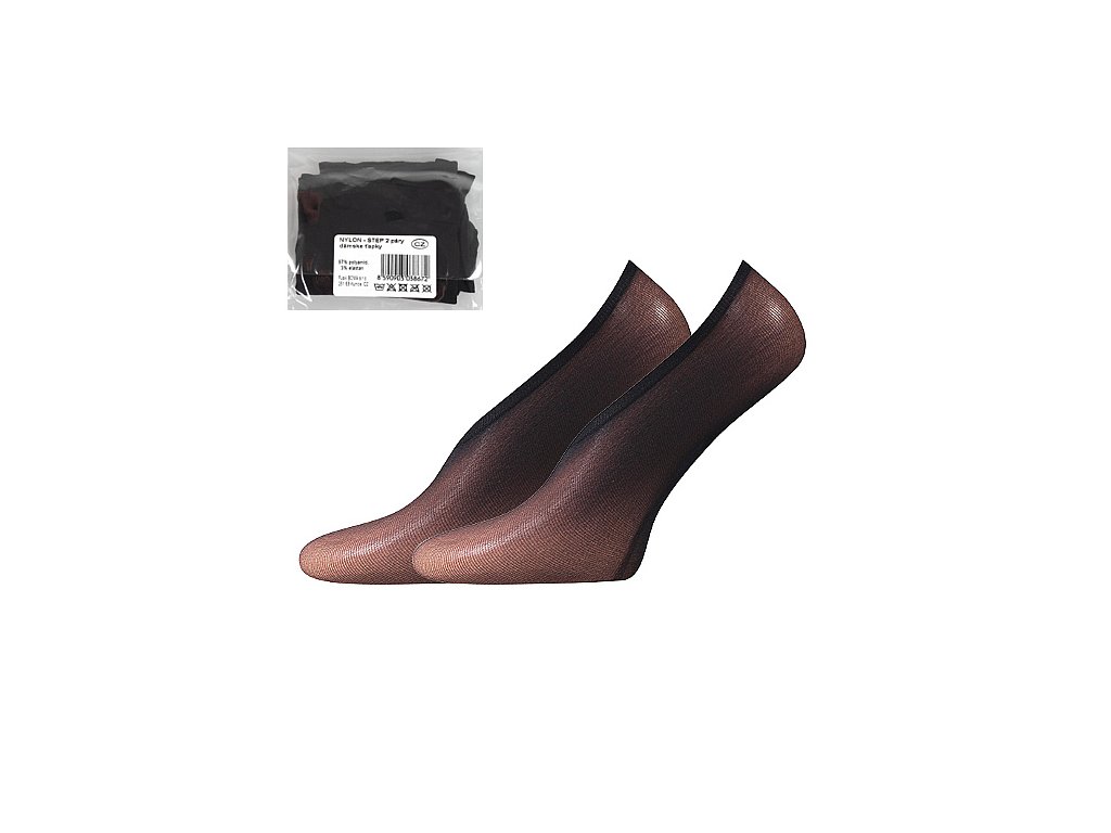 Dámské ťapky z kolekce LadyB NYLON STEP v síle 20 DEN z velmi jemného úpletu. Hygienické řešení, pokud nechcete chodit v létě v obuvi “naboso”. Pružné nenápadné ťapky jsou bezešvé a dobře chrání před odřeninami. Protože nepřesahují okraje obuvi, užijete je do tenisek, mokasín nebo espadrilek, ale i další nízké obuvi. Doporučujeme na jarní a letní období. V praktickém balení 2 párů, balené pouze v sáčku bez krabičky Vás vyjdou ještě levněji!Doplňkové parametry