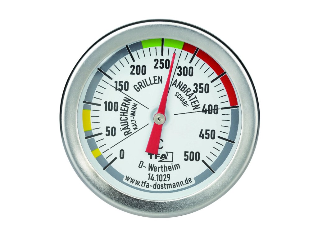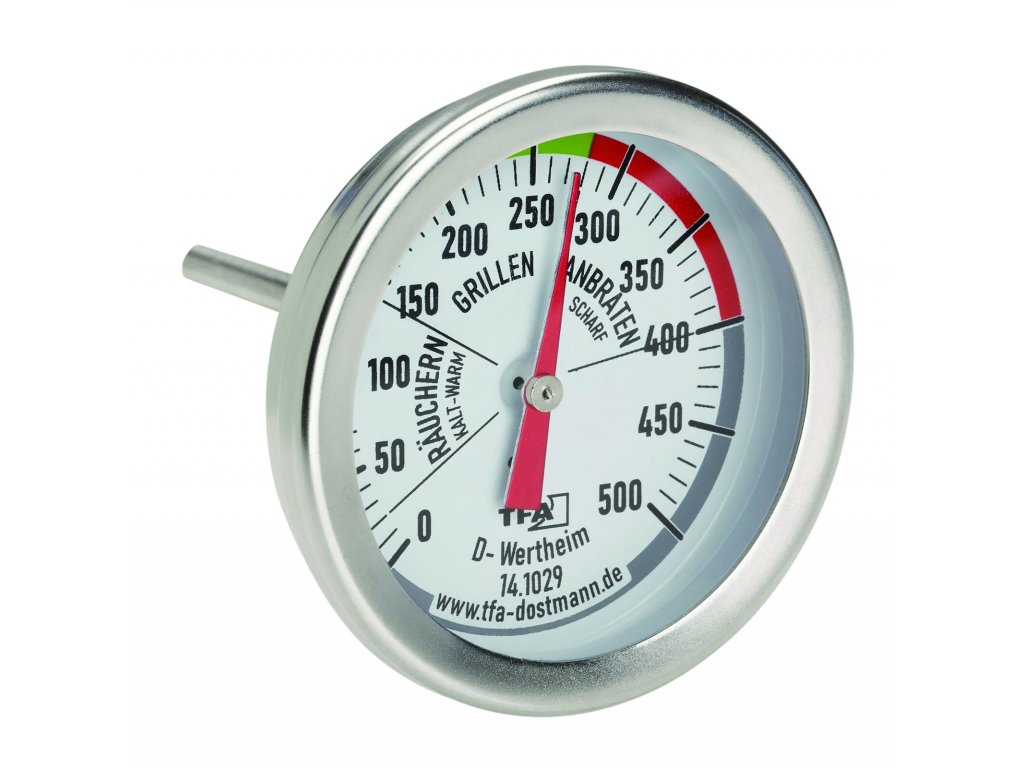 Teploměr je vyroben z vysoce kvalitní nerezové oceli a lze jej použít jako náhradní díl nebo jako dovybavení stávajícího grilu, udírny nebo grilovacího vozíku.