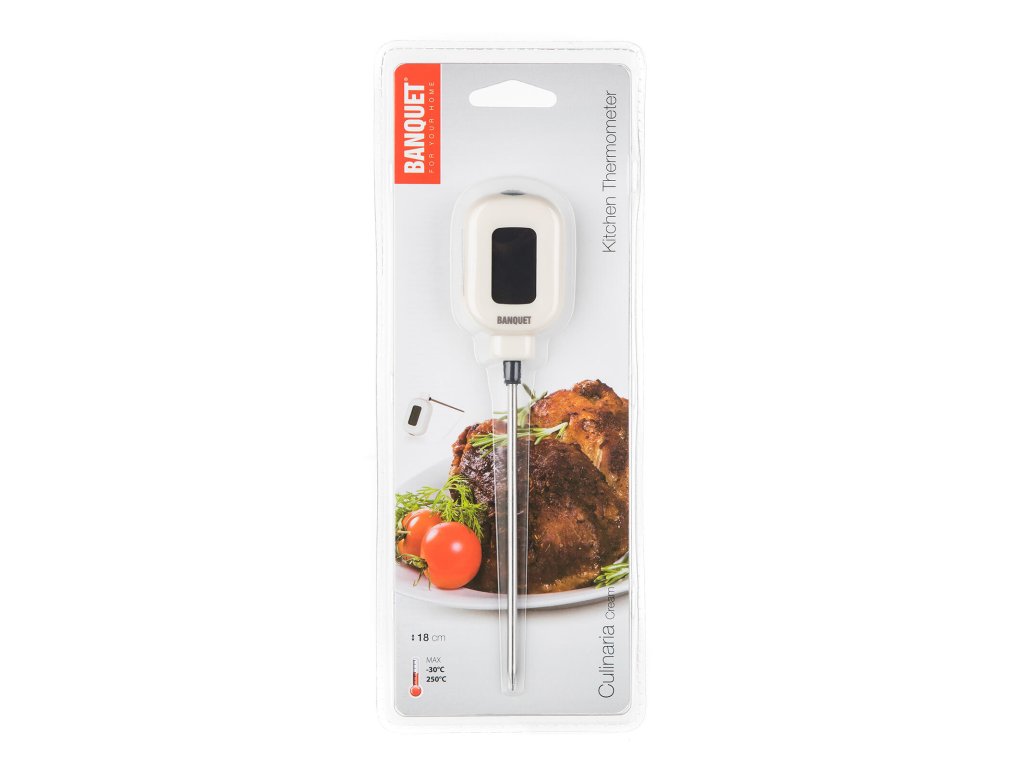 Teploměr má dlouhou nerezovou sondu s čidlem, která se dá jednoduše zasunout do jakéhokoliv jídla a zjistit tak aktuální teplotu.