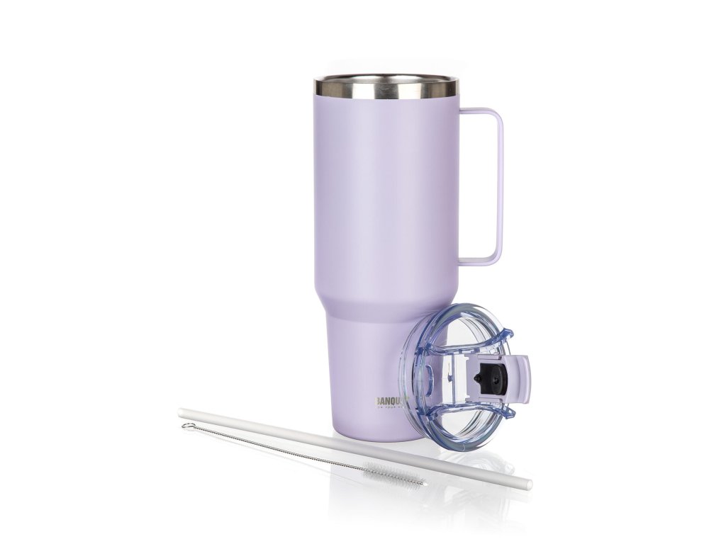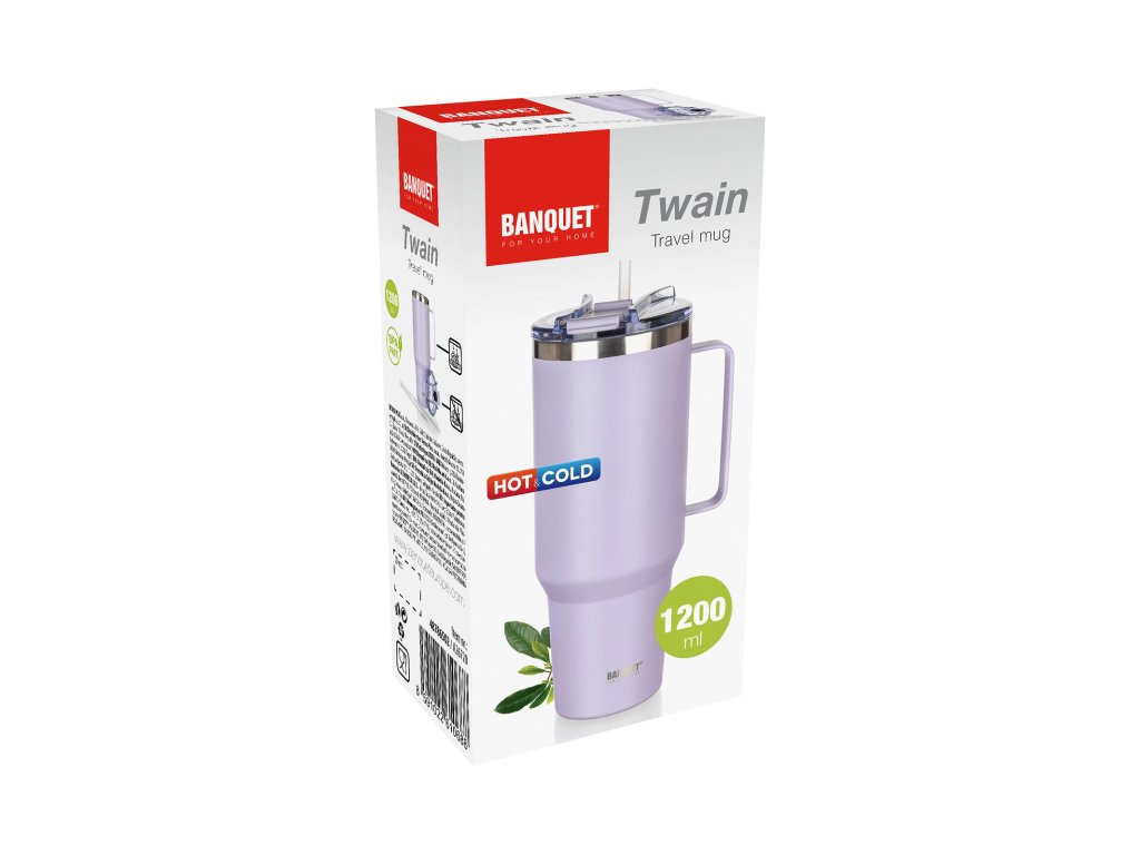 Dvoustěnný cestovní termohrnek TWAIN, v barvě lila, je vhodný na teplé i studené nápoje.