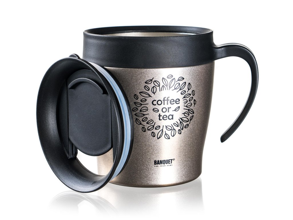 Tělo hrnku je vakuové, udrží nápoje déle horké či studené.