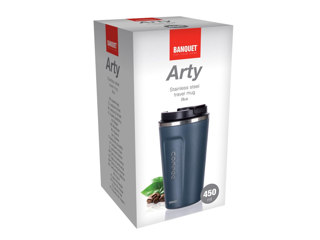 Dvoustěnný cestovní termohrnek ARTY v modré barvě, je vhodný na teplé i studené nápoje.