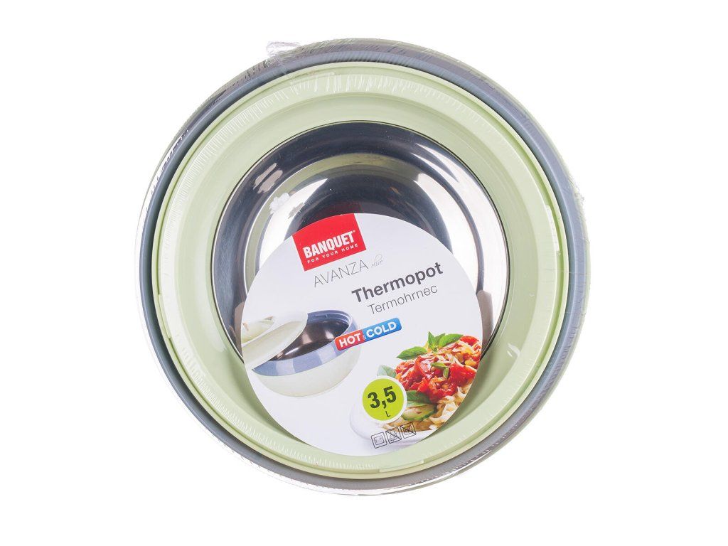 Termohrnec s poklicí AVANZA Olive je praktický pro uchovávání teplých pokrmů.