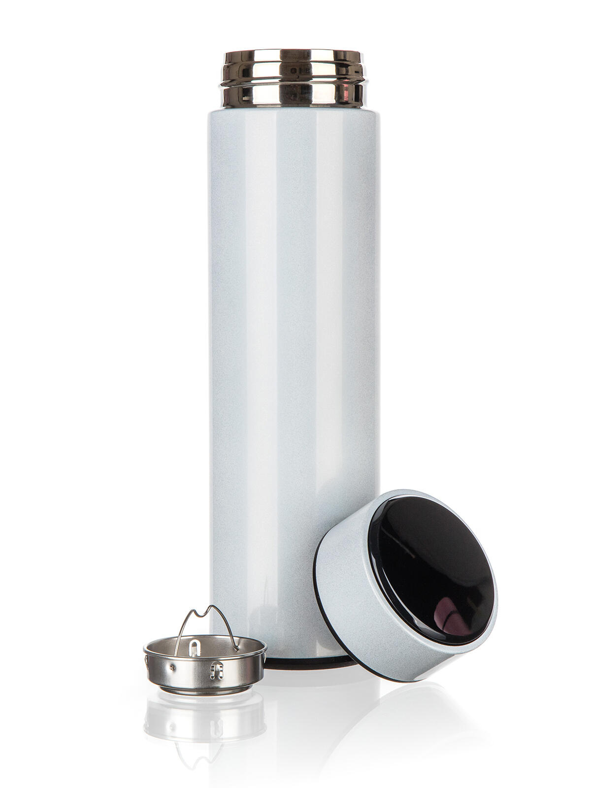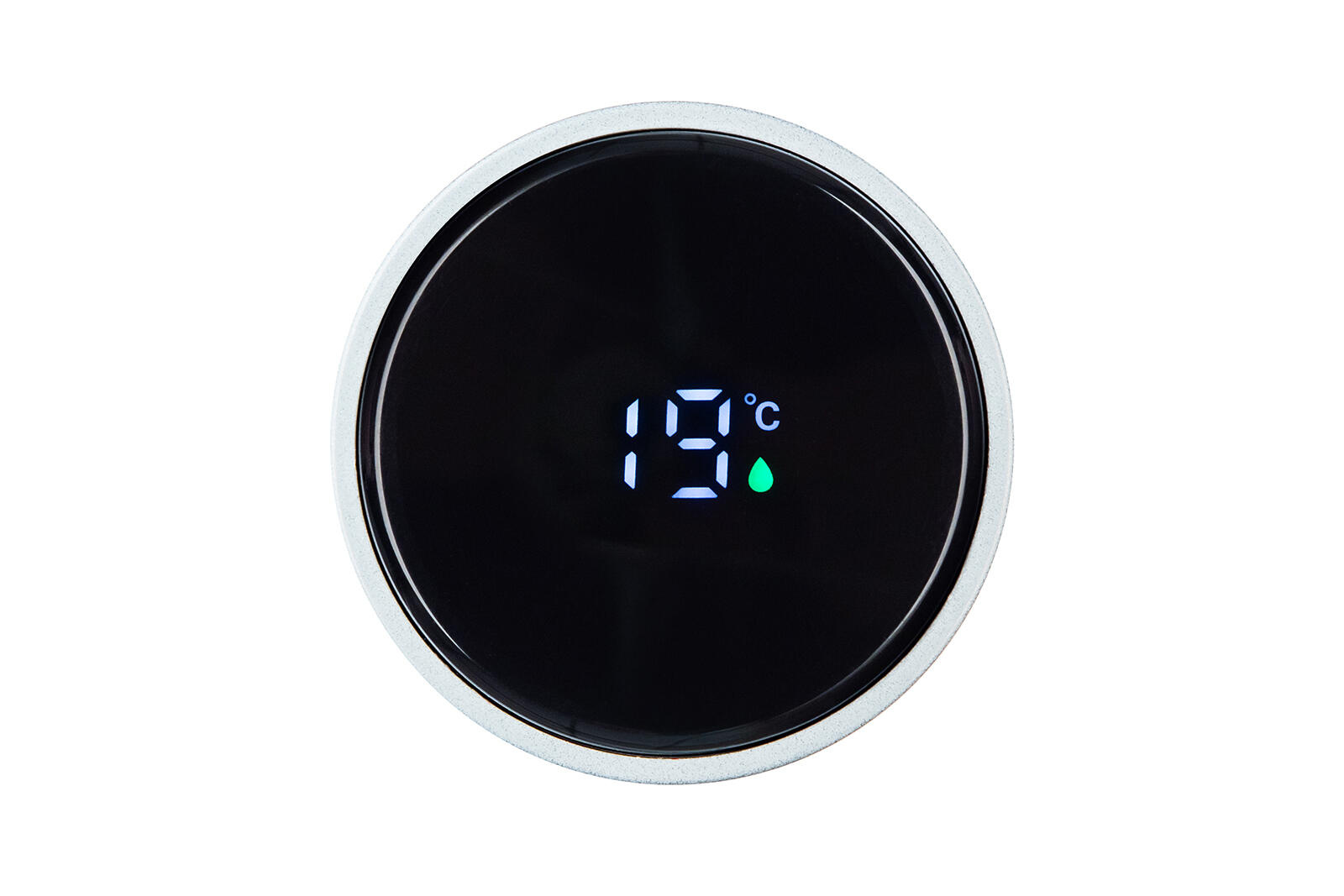Ve víčku je zabudovaný digitální teploměr, který vám po poklepání ukáže aktuální teplotu vašeho nápoje.
