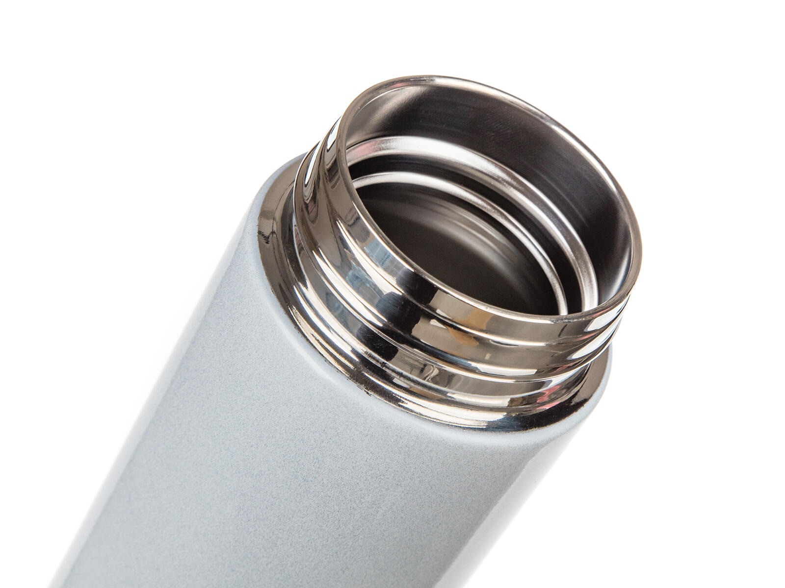 Cestovní chytrá termoska TREK BT má vnější i vnitřní povrch z nerezu a plastové víčko.