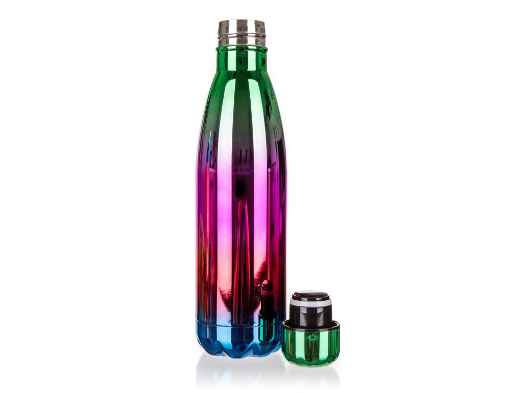 Termo láhev je ve velmi efektivním, duhovém a lesklém provedení.