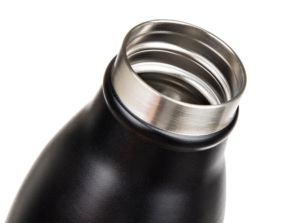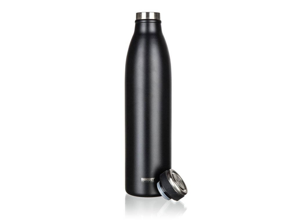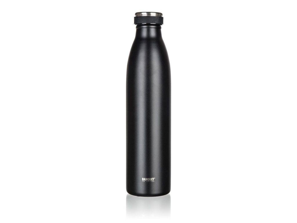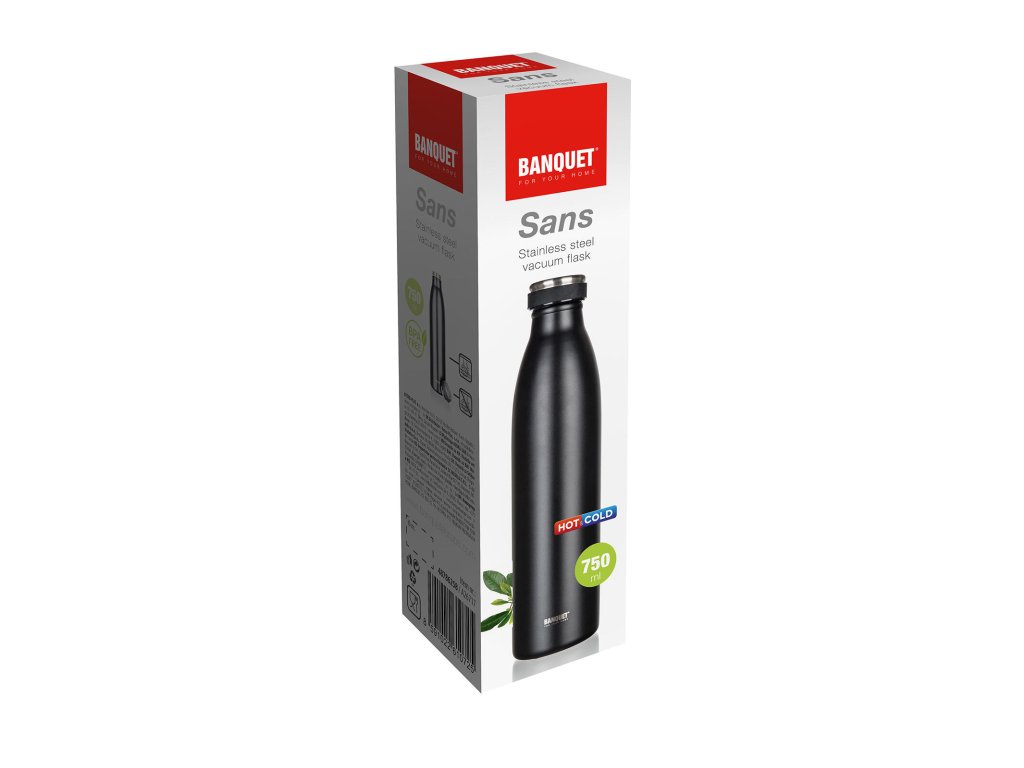Dvoustěnná cestovní termoska SANS, v černé barvě, je vhodná na teplé i studené nápoje.