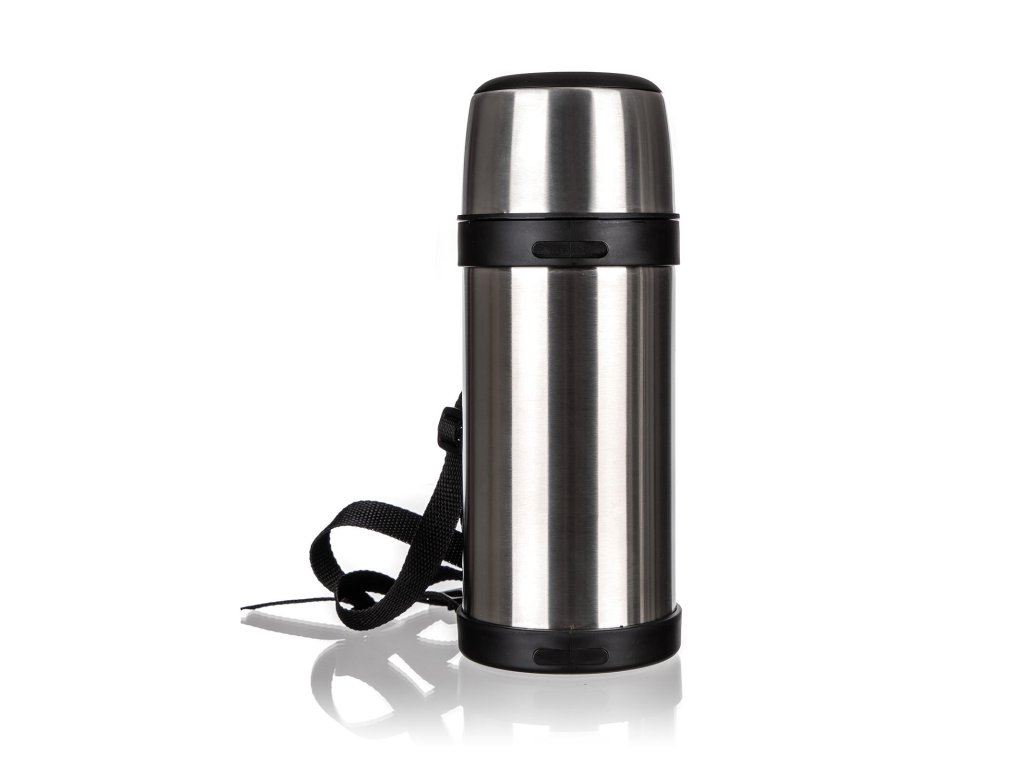 Nerezová cestovní termoska PENTA, o objemu 1,5 l, má dvouplášťové provedení, vnější i vnitřní povrch je vyroben z nerezu 201.