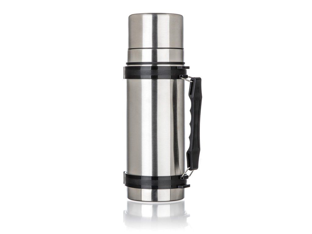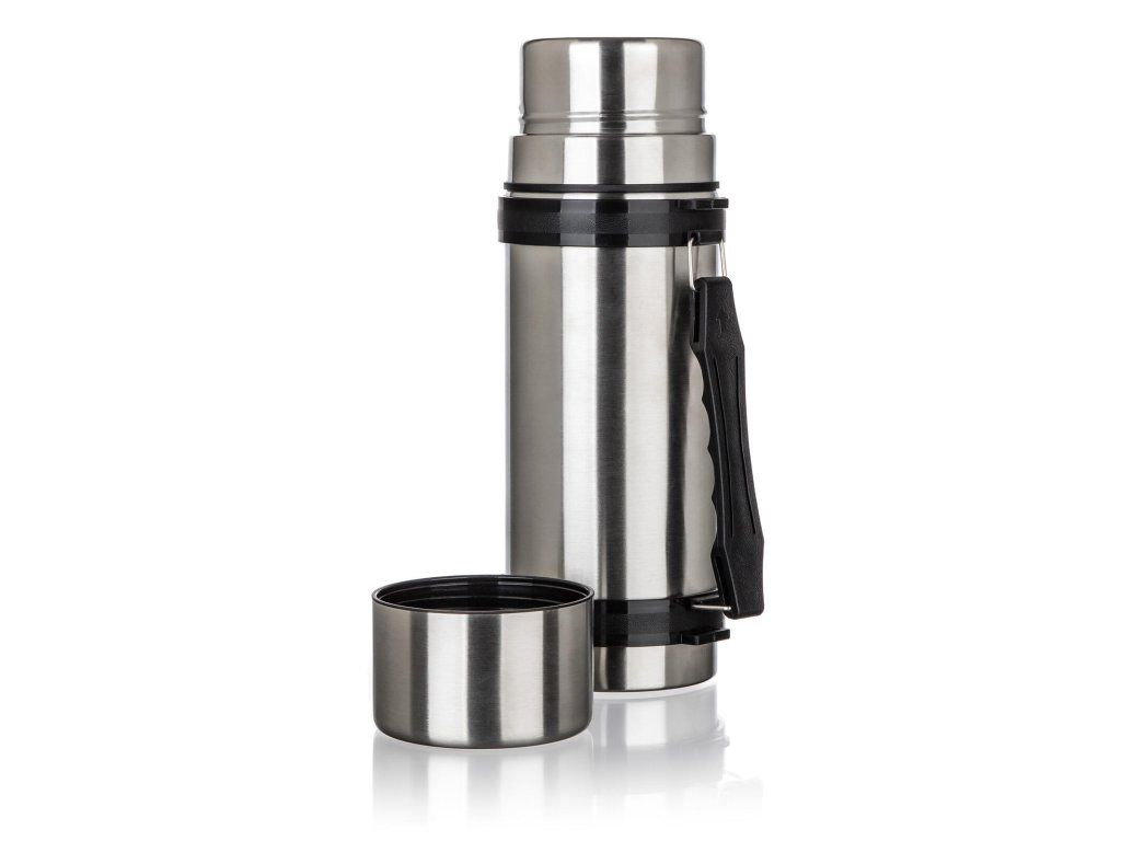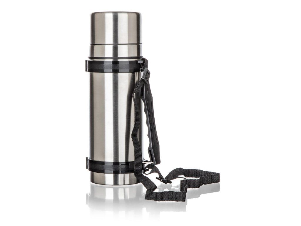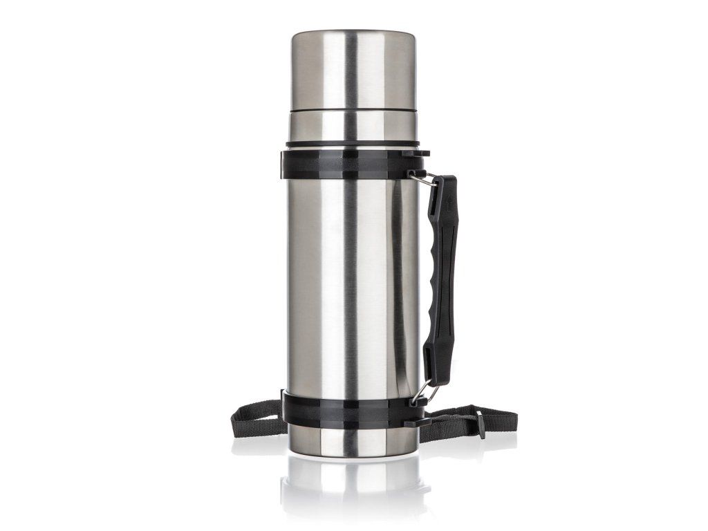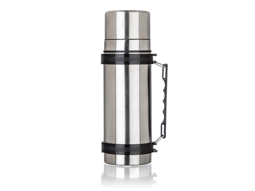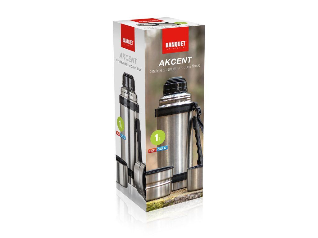 Nerezová cestovní termoska AKCENT o objemu 1 l, má dvouplášťové provedení, vnější i vnitřní povrch je vyroben z nerezu.