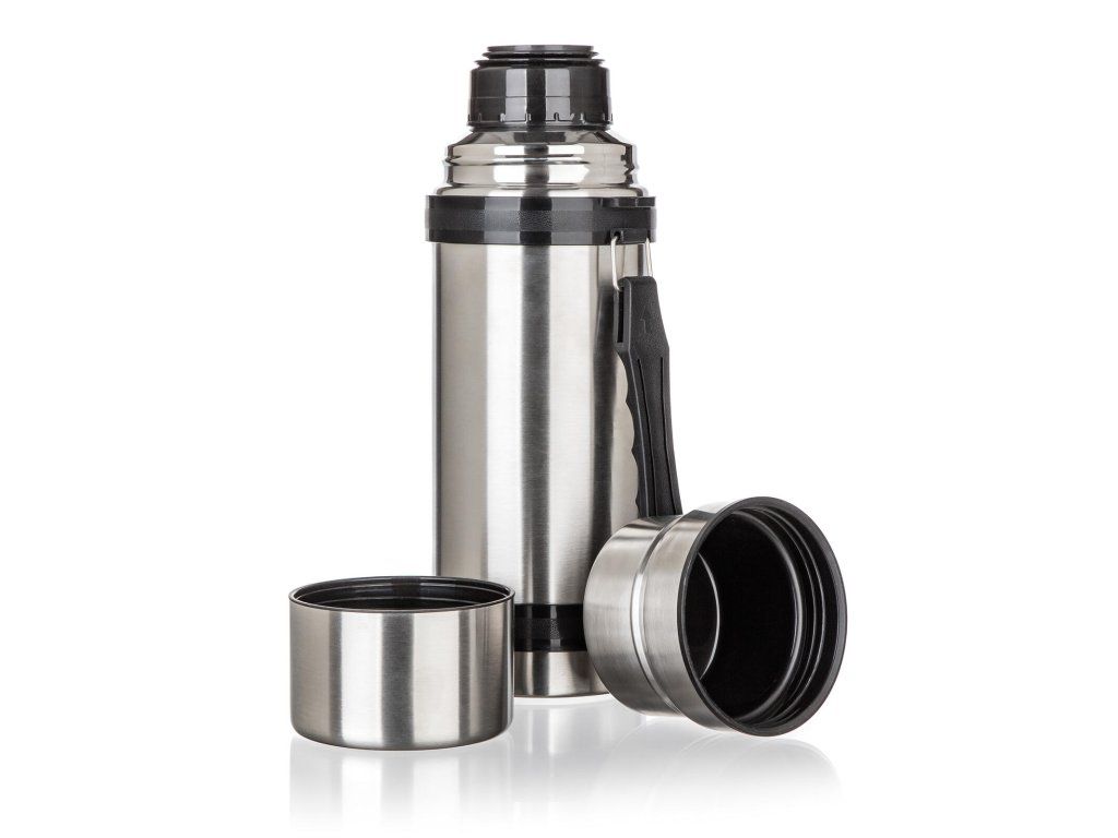 Součástí termosky je praktické plastové držadlo.