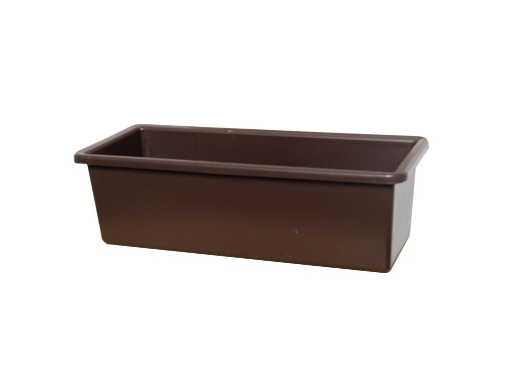 Plastový truhlík na květiny, pro lepší růst a snadnější zálivku se doporučuje provrtat dno pro odtok vody a kombinovat s miskou pod truhlík.