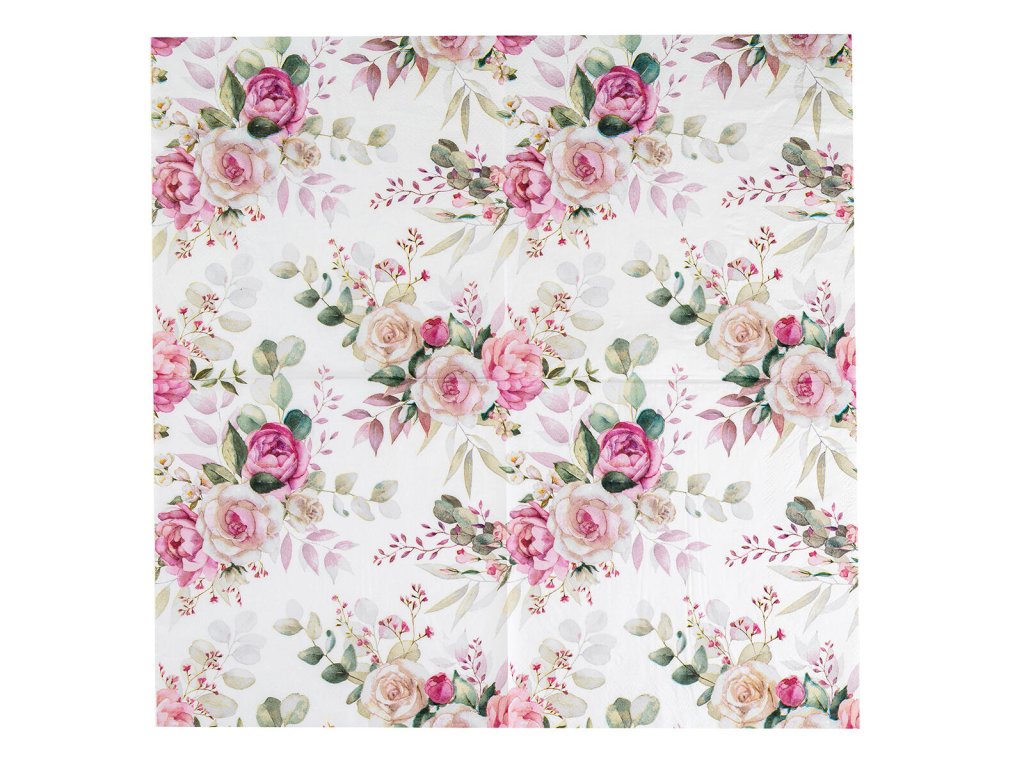 Papírové jídelní ubrousky PINK ROSE s dekorem růží, 3vrstvé.