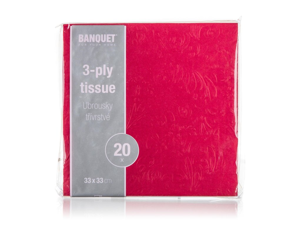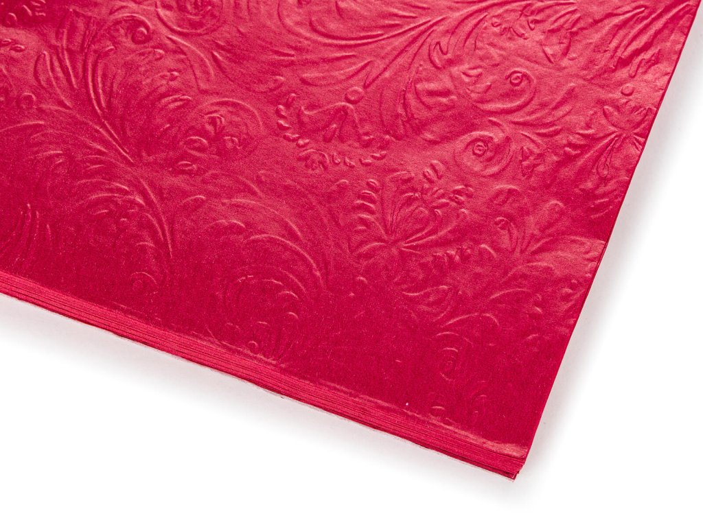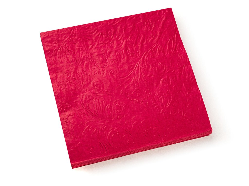 Papírové jídelní ubrousky s bordó reliéfem 3vrstvé, rozměr 33 x 33 cm. Jsou baleny v sadě 20 ks. Papírové ubrousky jsou nezbytnou součástí nejen při slavnostním stolovaní, ale také při každodenní použití při přípravě svačinek do školy nebo na výlet.