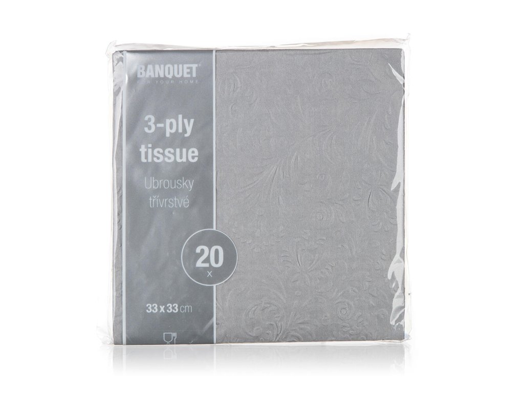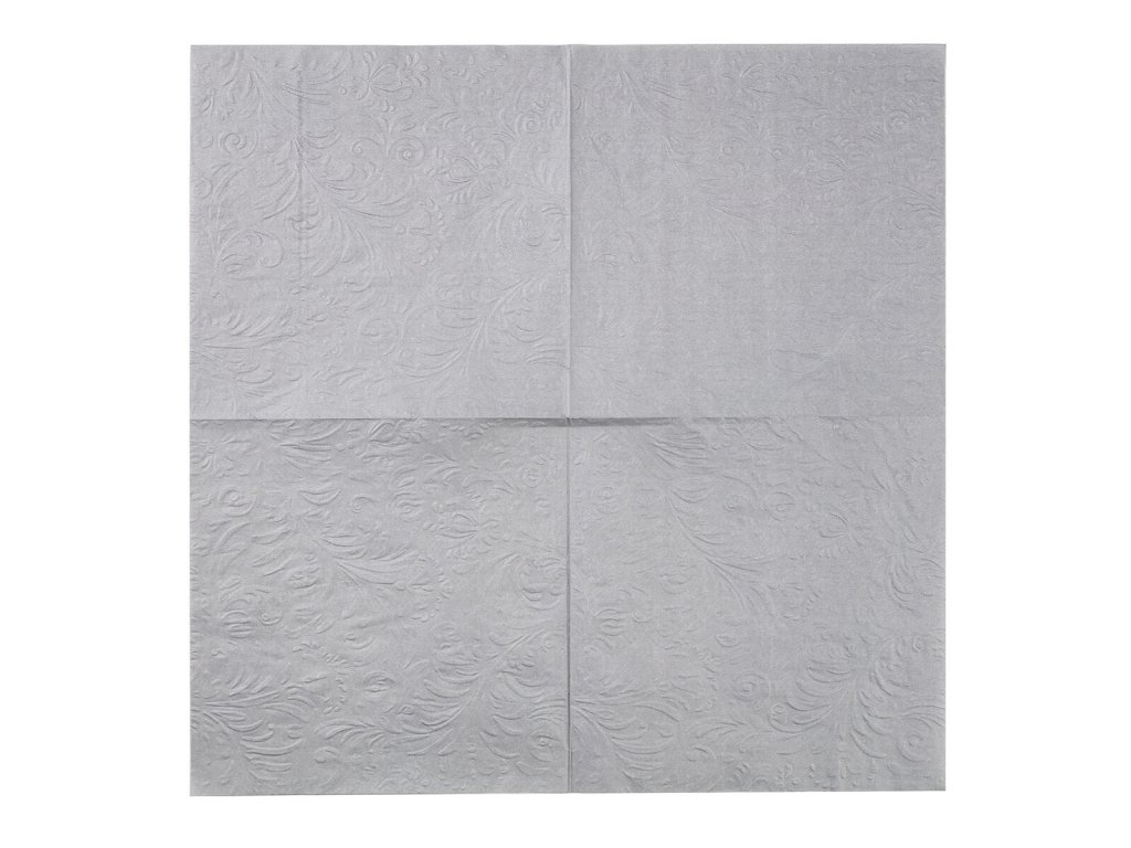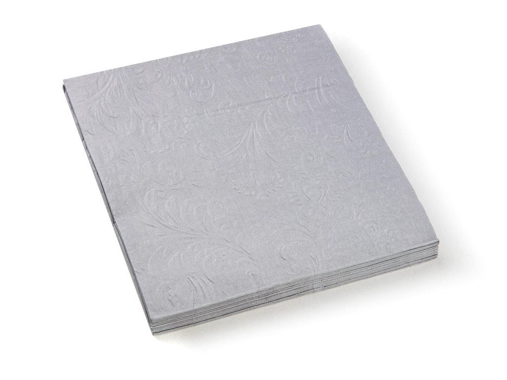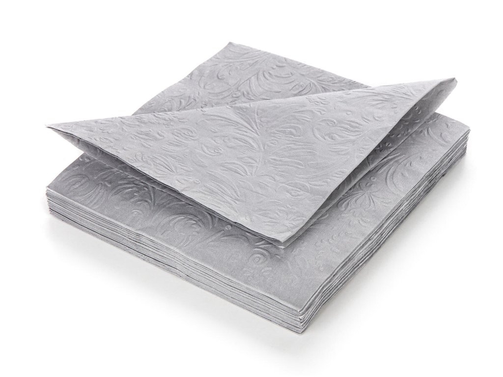 Papírové jídelní ubrousky s šedým reliéfem 3vrstvé, rozměr 33 x 33 cm. Jsou baleny v sadě 20 ks. Papírové ubrousky jsou nezbytnou součástí nejen při slavnostním stolovaní, ale také při každodenní použití při přípravě svačinek do školy nebo na výlet.