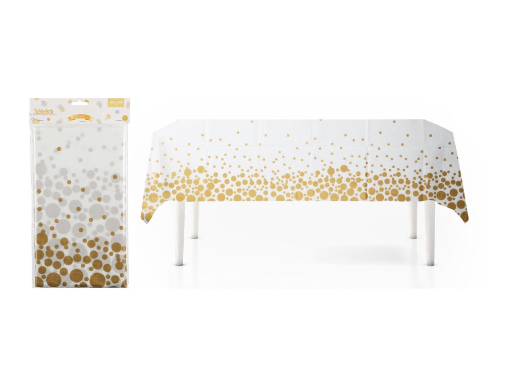 Ubrus se zlatým dekorem, který lze použít jak doma, tak i na zahradě.