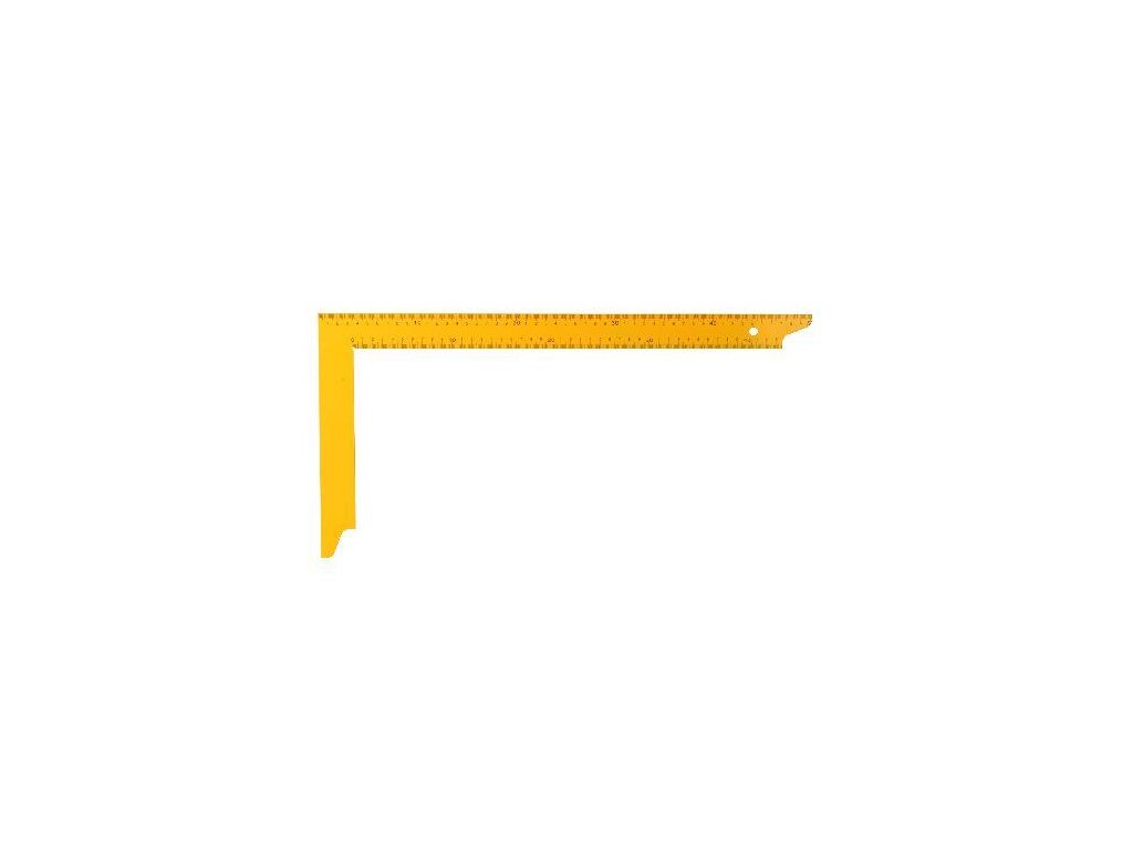 Tesařský úhelník z jednoho kusu tvrzené pružinové oceli, stupnice v mm - přesnost 0,5mm/m.