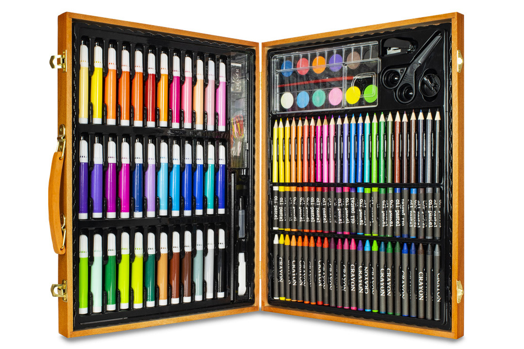 Kreativní sada MISTR MALÍŘ - obsah balení: celodřevěný kufřík 36 ks fixů 24 ks pastelek 24 ks olejový pastel 24 ks voskovek 1 ks vodové barvy (12 odstínů) 1 ks štětec 1 ks paleta 1 ks tuba s bělobou 1 ks lepidlo 1 ks tužka 1 ks pravítko (15 cm) 1 ks guma 1 sáček se sponkami (20 ks) 1 ks ořezávátko 1 ks nůžky 1 ks mini sešívačka Rozměr kufříku: cca 38 x 32 cm Na kreativní sadu MISTR MALÍŘ poskytujeme záruku v délce 24 měsíců. Provedení výrobku se může mírně lišit od vyobrazení. Vhodné pro děti od 3 let.