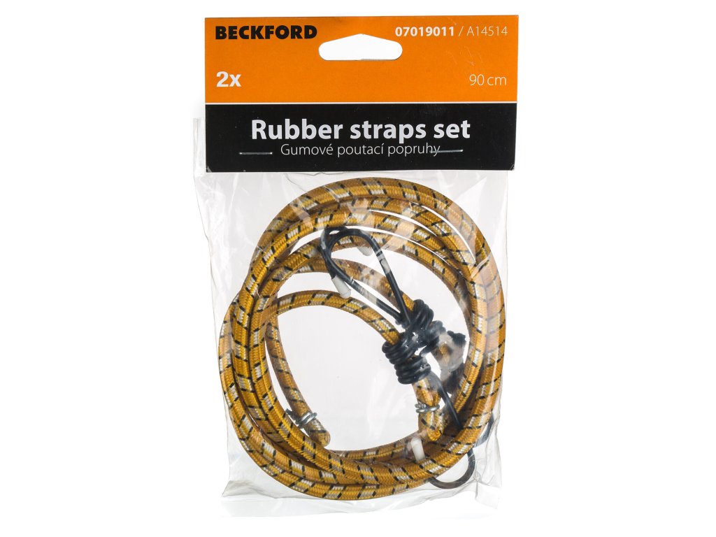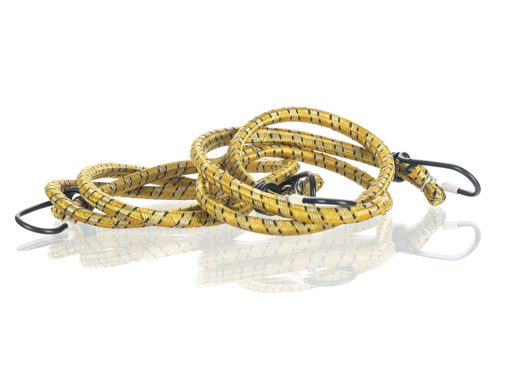 Gumové popruhy jsou vhodné pro upevnění nákladů. Na koncích jsou opatřeny kovovým háčkem. Sadu lze využít nejen v domácnosti, ale i na zahradě nebo dílně.