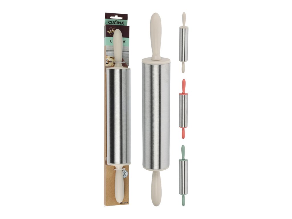 Váleček na těsto obouruční, 44 x 6 cm, nerez / PH rukojeť, mix barev.