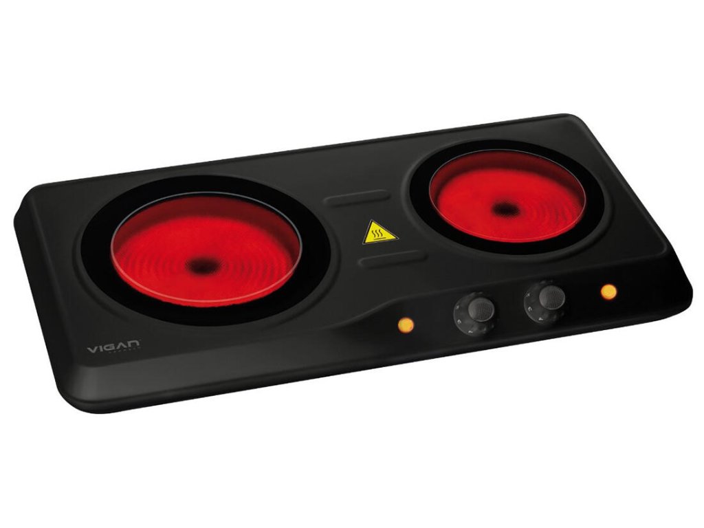 Dvouplotýnkový elektrický vařič VIGAN 1200/800 W s plynulou regulací teploty a tepelnou pojistkou proti přehřátí je skvělý do malé kuchyně či na chatu.