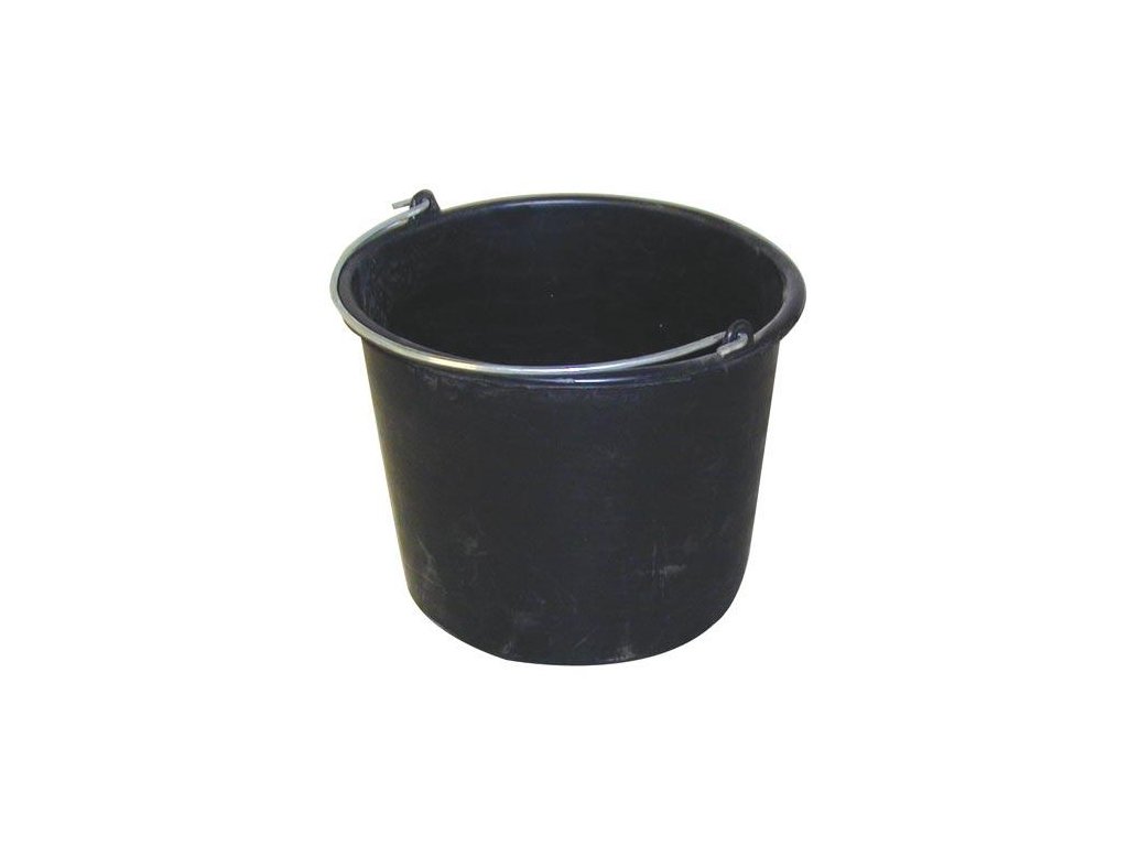 Plastové vědro s drátěným držadlem, o objemu 12 l, se využije na míchání stavebních hmot, k uskladnění sypkých hmot nebo k přesunu stavební suti.