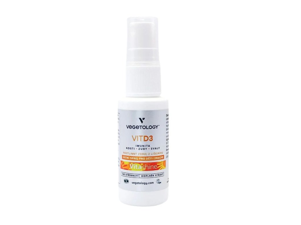 Veganský doplněk stravy Vegetology Vit D3 Vitashine ve spreji je unikátním doplňkem pro vaši imunitu a pohybový aparát.