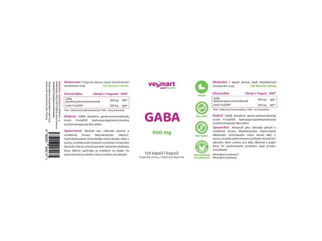 Klíčové vlastnosti produktu Vegmart GABA 500 mg, 120 kapslí