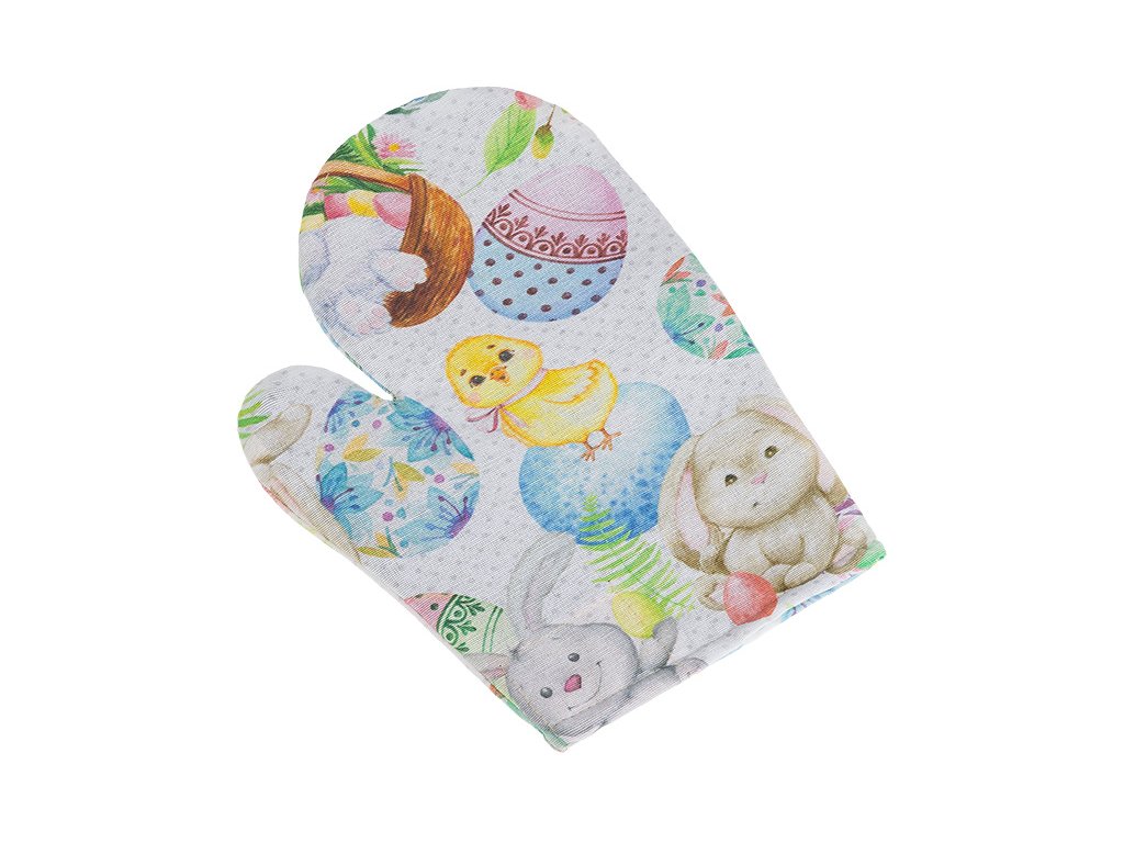 Kuchyňská chňapka s velikonočním motivem pro hospodyňky s praktickým magnetem a poutkem pro zavěšení.