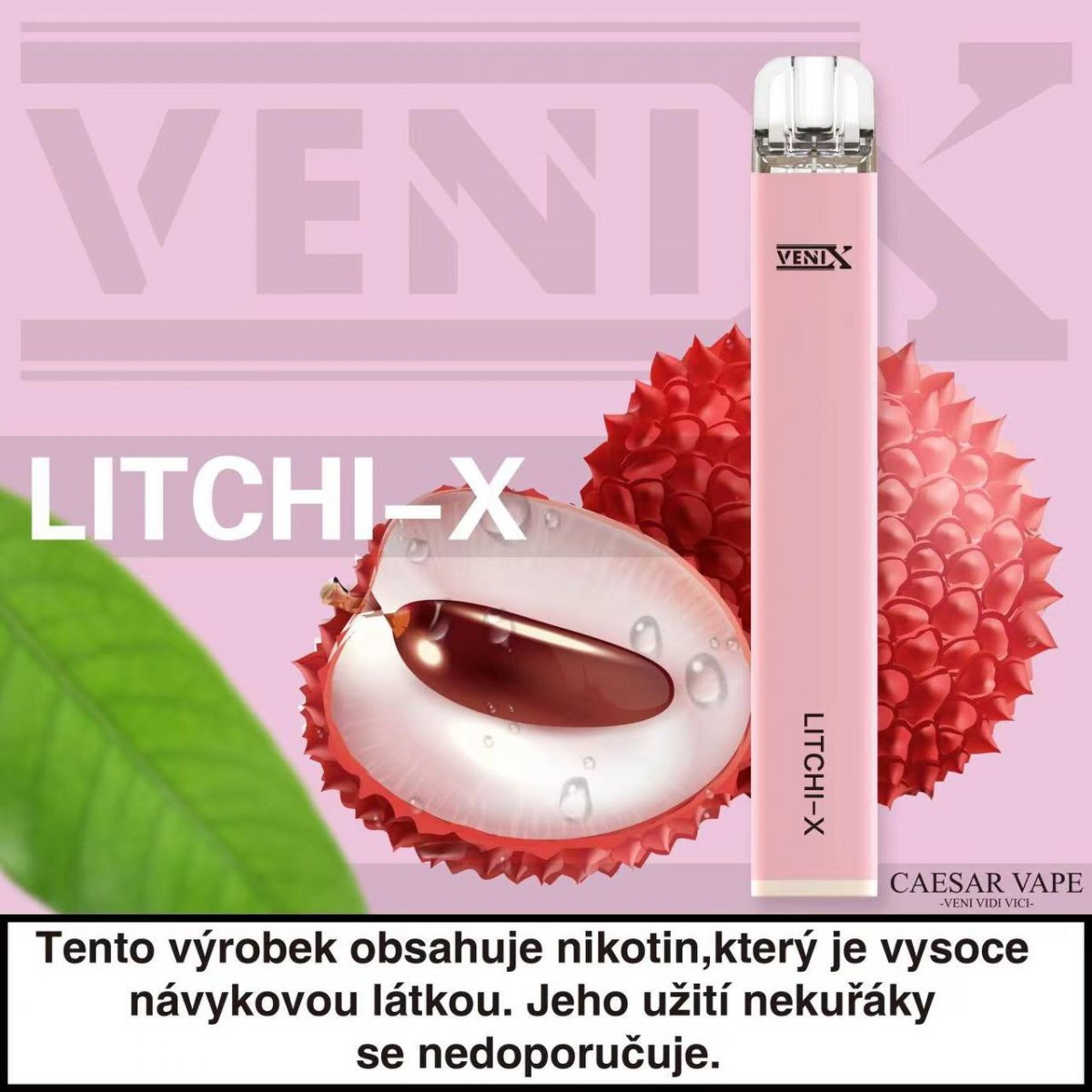 Jednorázová elektronická cigareta VeniX s příchutí liči - Litchi Obsah nikotinu: 18/mg (1,62%) Kapacita baterie: 400 mAh Hliníkové tělo Potahů: 700x Perfektní chuť liči Intenzivní zážitek se skvělou chutí Dostupné v osmi příchutí Kvalitní zpracování Perfektní na cesty Výkonná e-cigareta Česká značka Pouze pro osoby starší 18 let. Tento výrobek obsahuje nikotin, který je vysoce návykovou látkou. Jeho užití se nekuřáky nedoporučuje. Uchovejte mimo dosah osob mladších 18 let. Zdraví škodlivý při požití. Po manipulaci důkladně omyjte zasažená místa. Při požití: Necítite-li se dobře volejte TOXIKOLOGICE INFORMAČÍ STŘEDISKO/lékaře. Vypláchtěte ústa. Odstraňte obsah/obal v souladu s národními předpisy. Může vyvolat alergickou reakci. Obsahuje: nikotin (ISO), 2-isopropyl-N, 2,3-trimethylbutyramid. Složení: glycerol; propan-1, 2-diol, nikotin (ISO), ethyl maltol, N-ethyl-2(isopropyl)-5-methylcyklohexankarboxamid, ethylvanillin, isoamyl acetát, undekan-a-olid, kukuřičný olej.