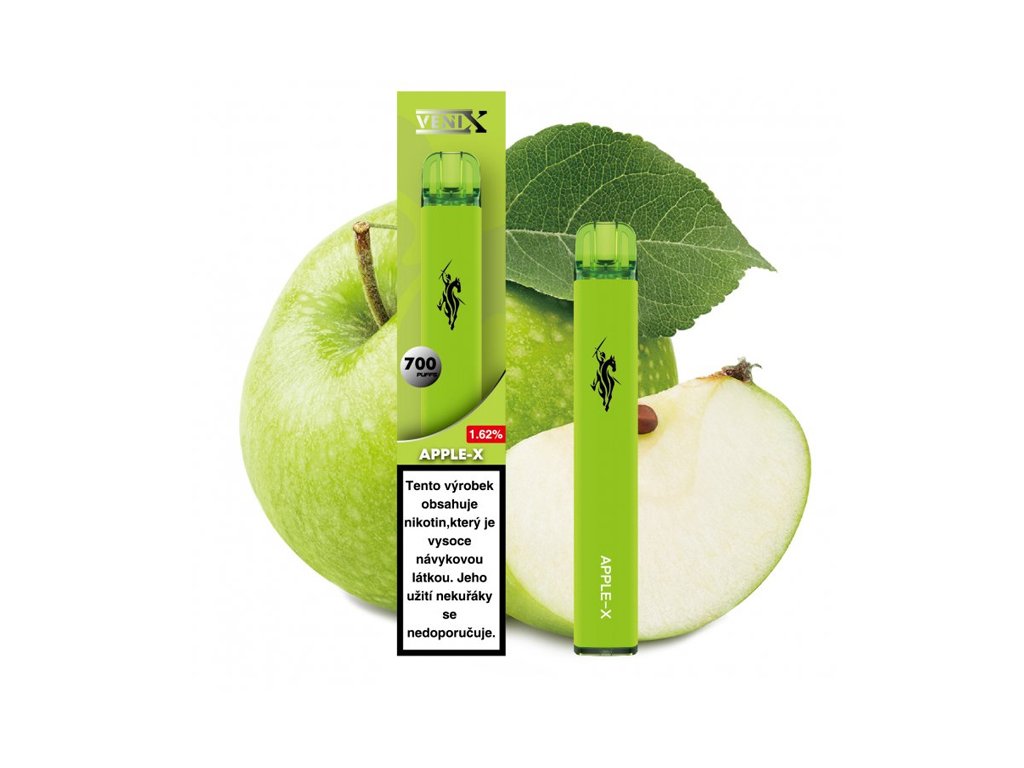 Intenzivní chuť jablka Jednorázová elektronická cigareta VeniX s příchutí jablka - APPLE. Až 700 potahů a příjemnou chutí. Užijte si perfektní vaping s naši elektronickou cigaretou VeniX.  Obsah nikotinu pouze 1,62% !