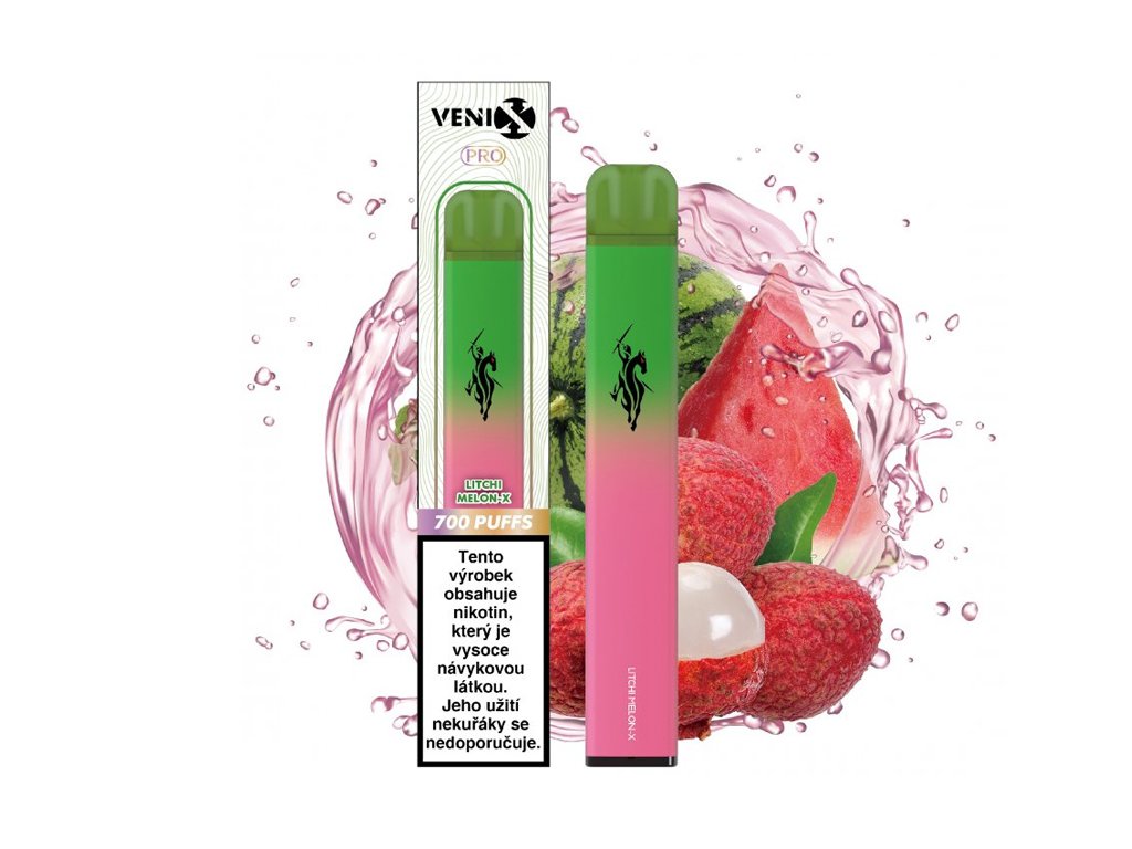 VENIX PRO - LITCHI MELON-X Připravte se na nový rozměr vape zážitků s VENIX PRO Litchi Melon. Ponořte se do sladkého ráje, kde se sladkost litchi prolíná s osvěžujícím melounem. Každé potáhnutí vám přinese sladkou chuť litchi a šťavnatou svěžest melounu. Jednorázová elektronická cigareta VENIX PRO s příchutí liči a melounu - LITCHI MELON. Až 700 potahů a příjemnou chutí. Užijte si perfektní vaping s naši elektronickou cigaretou VENIX.  Obsah nikotinu pouze 1,62% !
