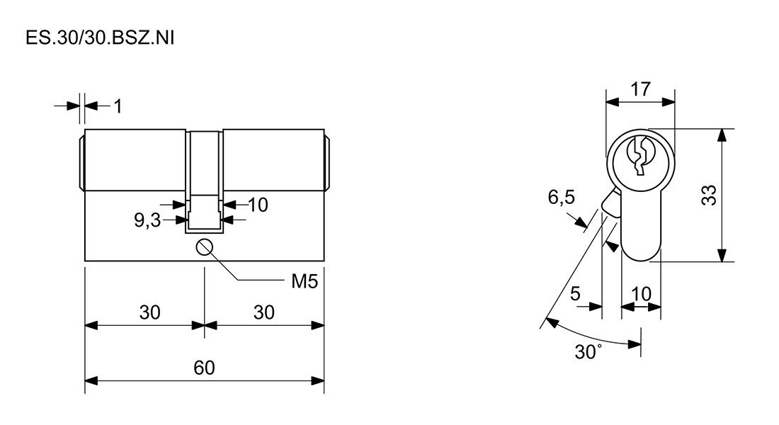 vložka cylindrická 30+30 6kl. Ni, 3.třída bezp.s prostup.spojkou RICHTER
