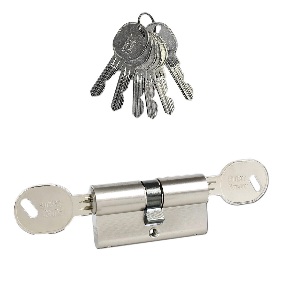 Ochrana proti odvrtání pomocí 6prvků z kalené oceli. Tvoří ji 5 kolíku a 1 stavítko.