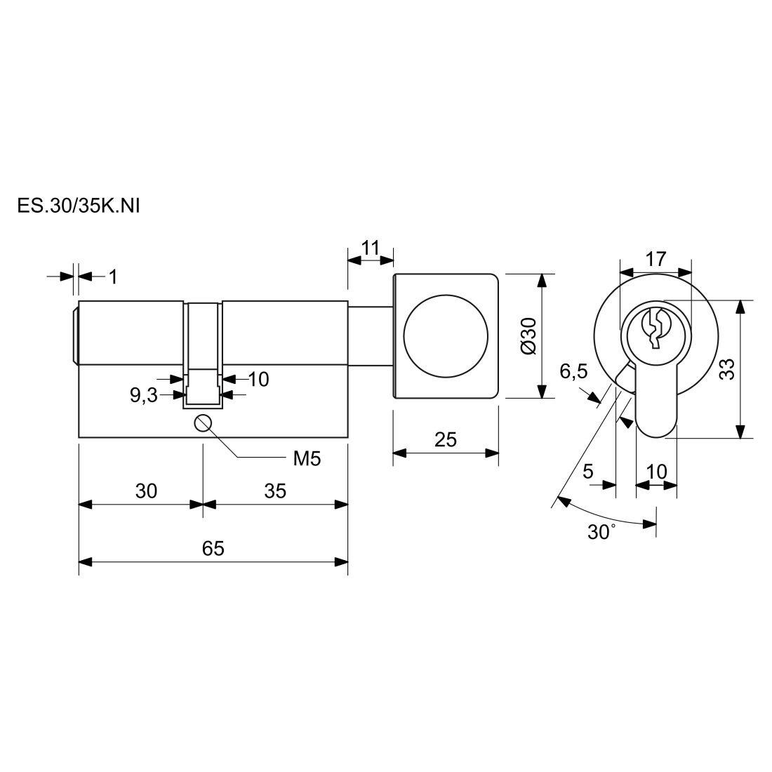 vložka cylindrická 30+35 s knoflíkem 6kl. Ni, 3.třída bezp.RICHTER