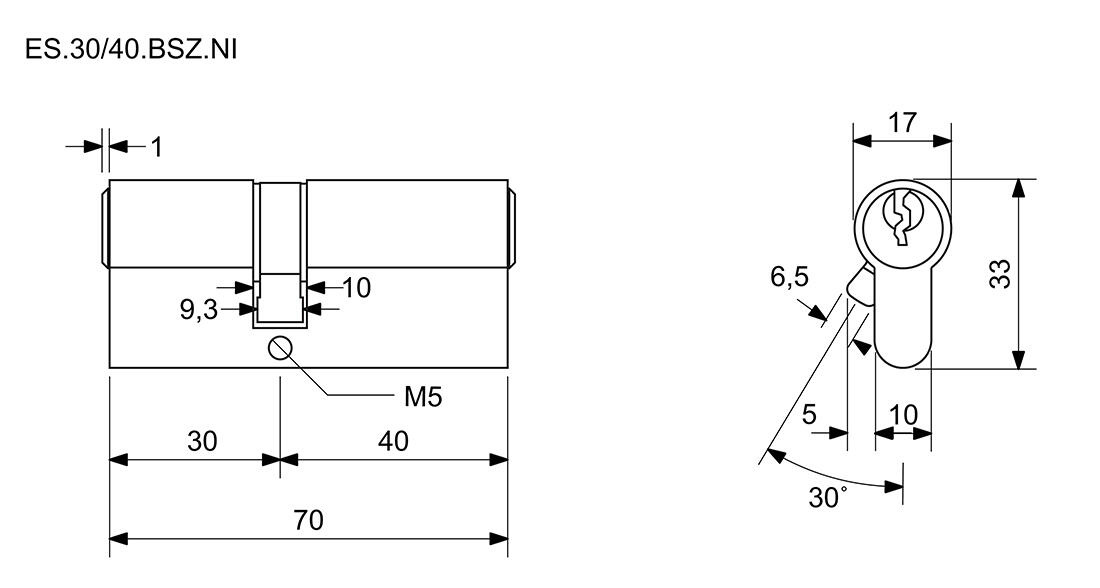 vložka cylindrická 30+40 6kl. Ni, 3.třída bezp.s prostup.spojkou RICHTER