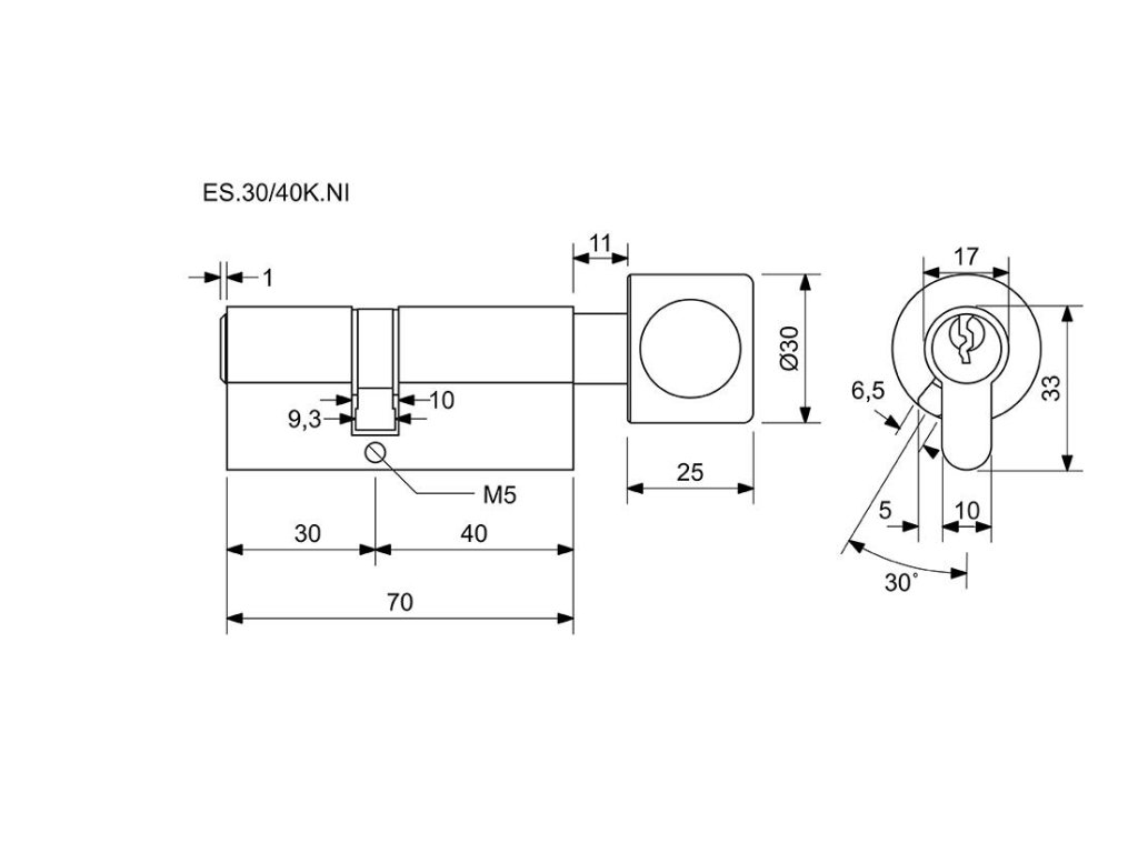 vložka cylindrická 30+40K s knoflíkem na delší str.6kl. Ni, 3.třída bezp.RICHTER