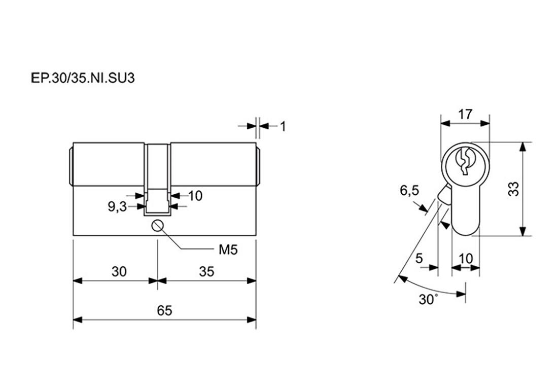 vložka cylindrická stavební 30+35 3kl. stejný uzávěr Ni RICHTER