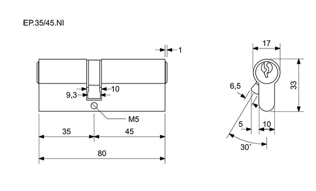 vložka cylindrická stavební 35+45 3kl. Ni RICHTER