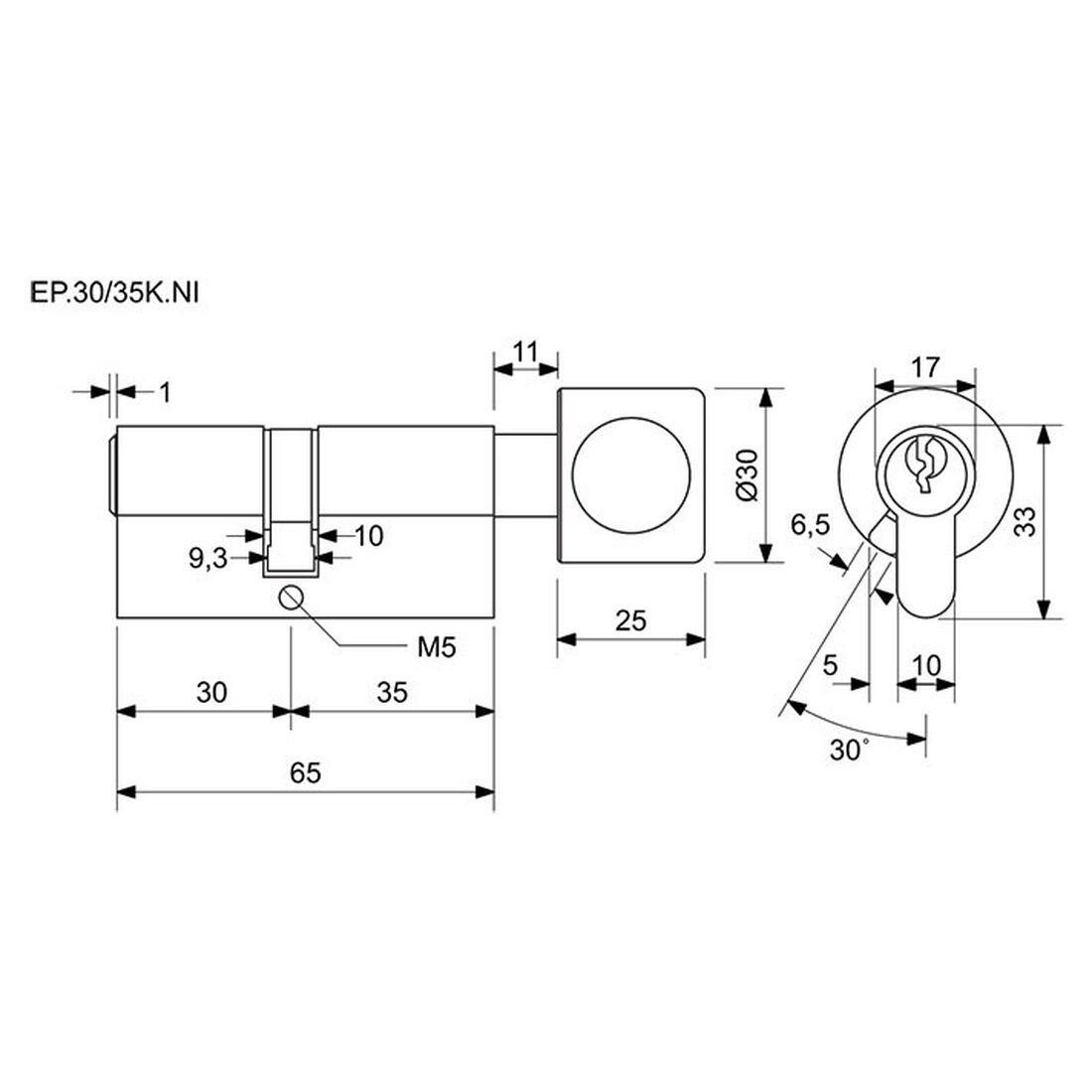 vložka cylindrická stavební s knoflíkem 30+35 3kl. Ni RICHTER