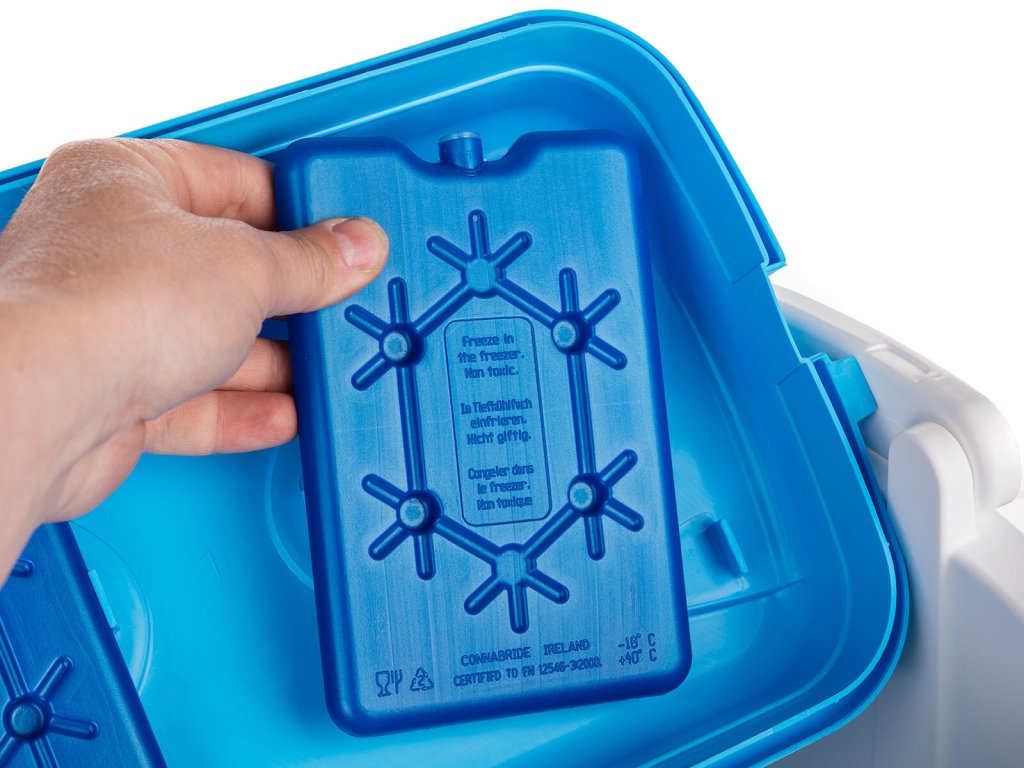 Chladící vložky se nechají vychladit v mrazničce a poté se vloží do chladící tašky.