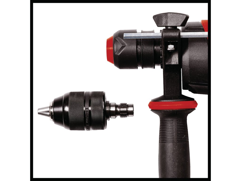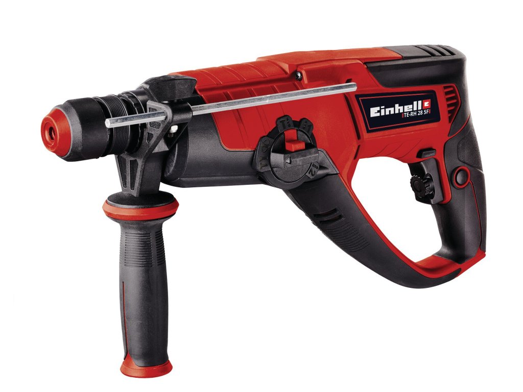 Vrtací kladivo Einhell TE-RH 28 5F je multifunkční přístroj, který je vždy po ruce jako nenahraditelný pomocník v garáži nebo dílně. Vrtací kladivo v sobě spojuje pět funkcí: Vrtání nebo vrtání s příklepem, sekání s fixací a bez fixace a samozřejmě šroubování, na tyto činnosti má robustní vrtací kladivo od firmy Einhell optimální vybavení. Dvoustupňová převodovka je optimálně navržena pro vrtání a šroubování do tvrdého materiálu: První převodový stupeň dodává vysoký točivý moment, druhý převodový stupeň zajišťuje pomocí vysokých otáček pronikání do materiálu. Vrtací kladivo TE-RH 28 5F s příkonem 950 wattů a s příklepy ve výši 4 500 ot./min. si prorazí cestu všemi běžnými materiály, ať už se jedná o kámen, dřevo nebo kov. Maximální průměr vrtání do betonu činí až 28 milimetrů. Pneumatické příklepové ústrojí umožňuje velmi dobré pronikání do materiálu. Všechny funkce lze navolit pomocí jediného polohového přepínače. Velké plochy s měkkým úchopem navíc zajišťují příjemné vrtání. Uzavřený tvar rukojeti poskytuje nezbytnou ochranu pro ruce. Aretace trvalého chodu umožňuje příjemnou a snadnou práci. Díky robustnímu držáku nástrojů SDS plus s poloautomatickým režimem je výměna nástroje rychlá a snadná. Vrtací kladivo je vybaveno plynule nastavitelným dorazem hloubky vrtání z masivního kovu. Přídavné sklíčidlo je určeno pro šroubování a vrtání. Dodává se v přepravním a úložném kufříku E-Box.