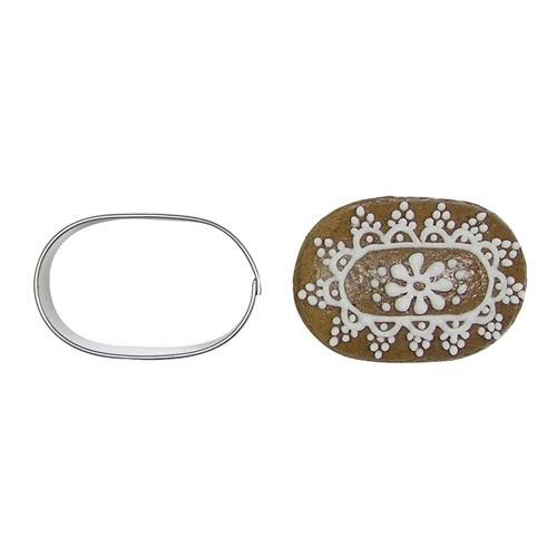 Nerezové vykrajovátko ve tvaru moka oválku je určené na vykrajování zajímavých tvarů z těsta na cukroví.