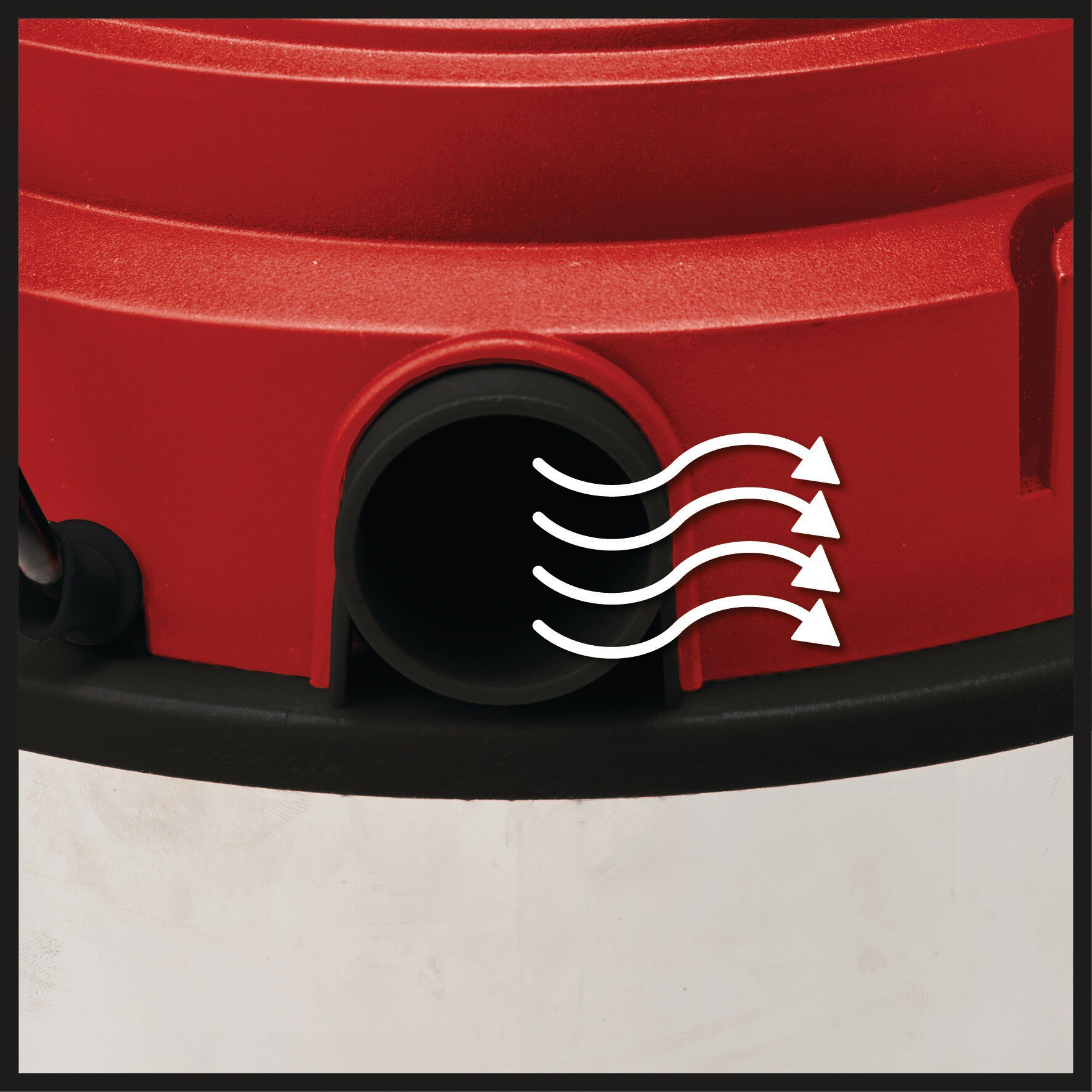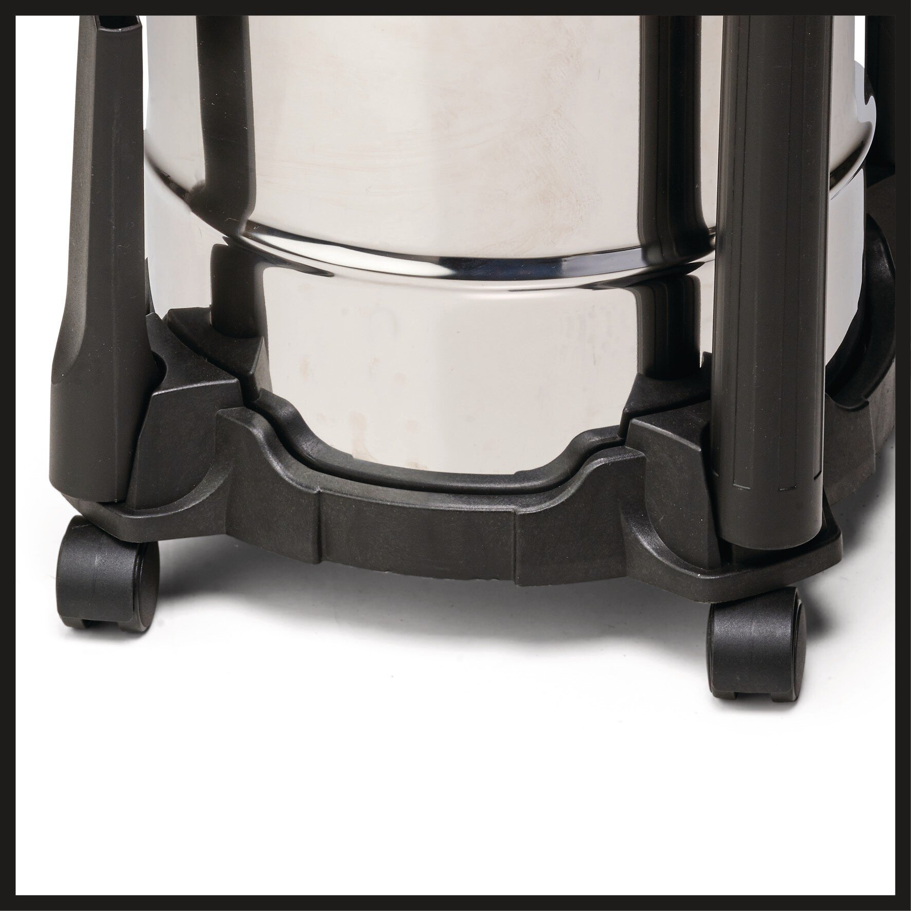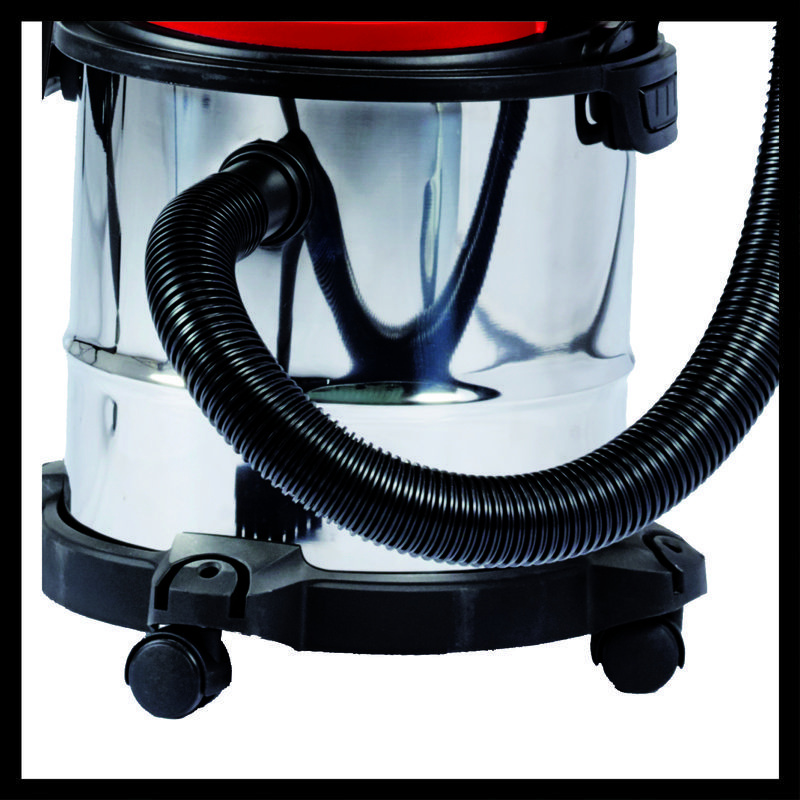 Vysavač na mokré a suché vysávání TC-VC 1812 S je flexibilní a univerzální vysavač se silným tahem pro snadný mokrý nebo suchý úklid, který by neměl chybět v žádné domácnosti. Snadno čistitelná 12litrová nádoba z ušlechtilé oceli zcela pojme jakékoli hrubé, jemné, mokré nebo suché nečistoty až po tekutiny. Díky silnému 1 250W motoru je dosaženo nejen dobrého sacího výkonu, díky praktické funkci foukání je kromě toho kdykoli k dispozici dostatečný tlak pro dodatečné profouknutí těžko přístupných míst. Robustní prachový sáček v systému spolehlivě zadržuje i jemný prach a dělá z vysávání čistou záležitost. Při mokrém vysávání chrání motor před znečištěním přídavný pěnový filtr. Vysavač TC-VC 1812 S je vybaven 36mm hadicovým systémem s malou přípojkou, sestávajícím ze sací hadice, 3 prodlužovacích trubic a adaptéru. Přiloženou velkou sací hubici s kombinovaným nástavcem lze použít jak pro koberce, tak pro hladké podlahy, štěrbinovou hubicí lze navíc důkladně vysát i úzké rohové prostory a zákoutí. Pomocí praktického držáku příslušenství lze všechny díly rychle a řádně uložit přímo na přístroji, navinutý elektrický kabel lze po dokončení práce bezpečně uchytit prostřednictvím držáku kabelu. Maximální mobilitu zajišťují odolné držadlo a čtyři otočná kolečka s hladkým chodem.