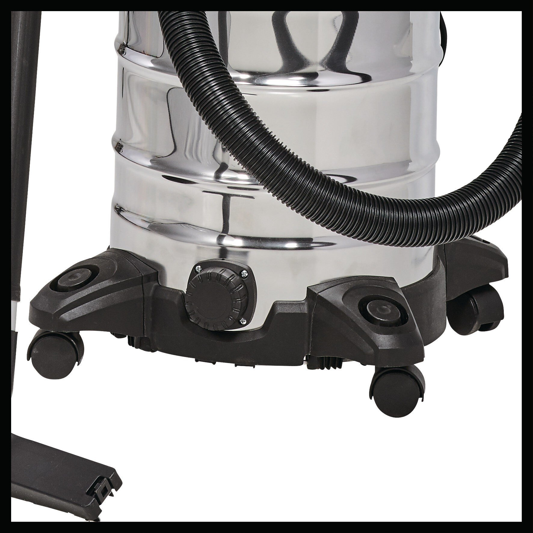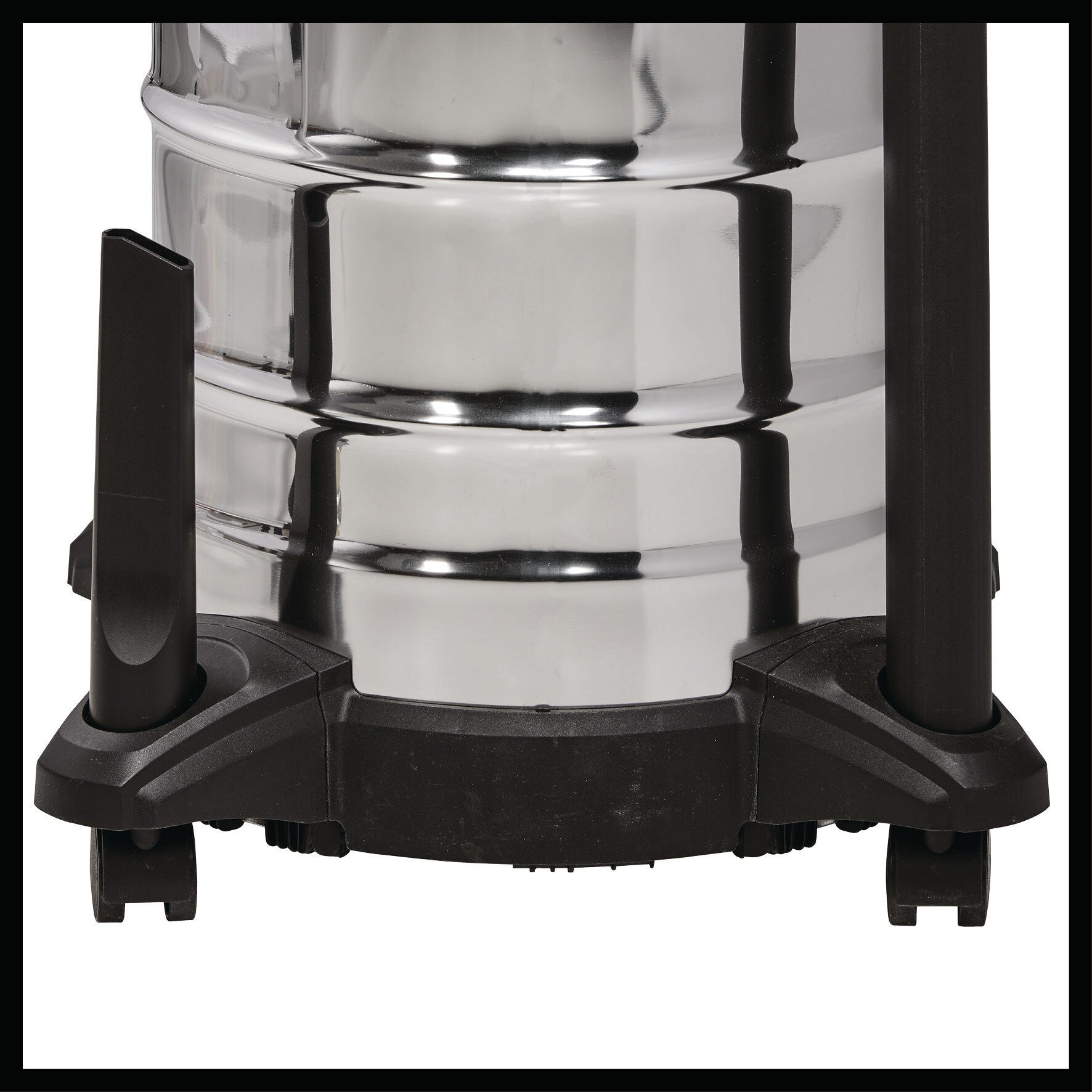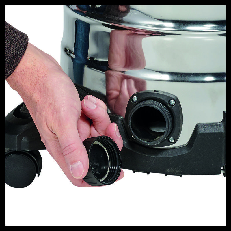 Vysavač na mokré a suché vysávání TC-VC 1930 S je pro ambiciózního domácího kutila nepostradatelným pomocníkem, který dobře poslouží při úklidu v domě, dílně a autě. Nádoba z ušlechtilé oceli nabízí kapacitu 30 litrů na nečistoty a tekutiny, které lze rychle a pohodlně odstranit pomocí vypouštěcího ventilu. K dispozici je také praktická ofukovací přípojka. Vysavač TC-VC 1930 S je vybaven 2,5 m sací hadicí, třídílnou plastovou sací trubicí, velkou sací hubicí s kombinovaným použitím na vysávání mokré/suché podlahy a štěrbinovou hubicí. Při odsávání prachu a třísek odvádí skládaný filtr dobrou práci, zatímco při mokrém vysávání chrání motor před znečištěním pěnový filtr. Díky držáku kabelu a držáku příslušenství mohou být všechny díly rychle a řádně uloženy přímo na přístroji. Pohodlnou manipulaci a mobilitu zajišťují držadlo a čtyři otočná kolečka.