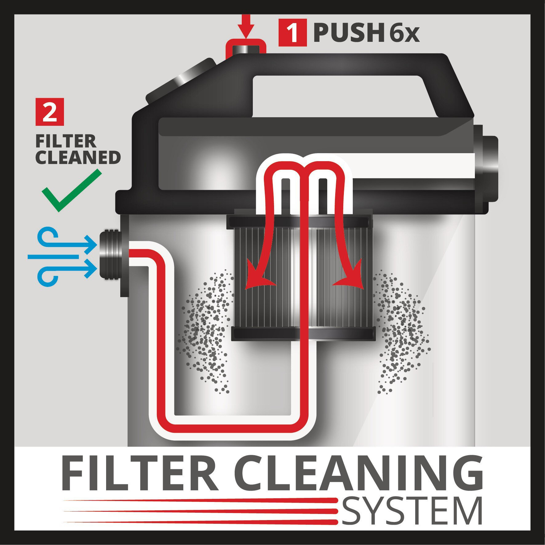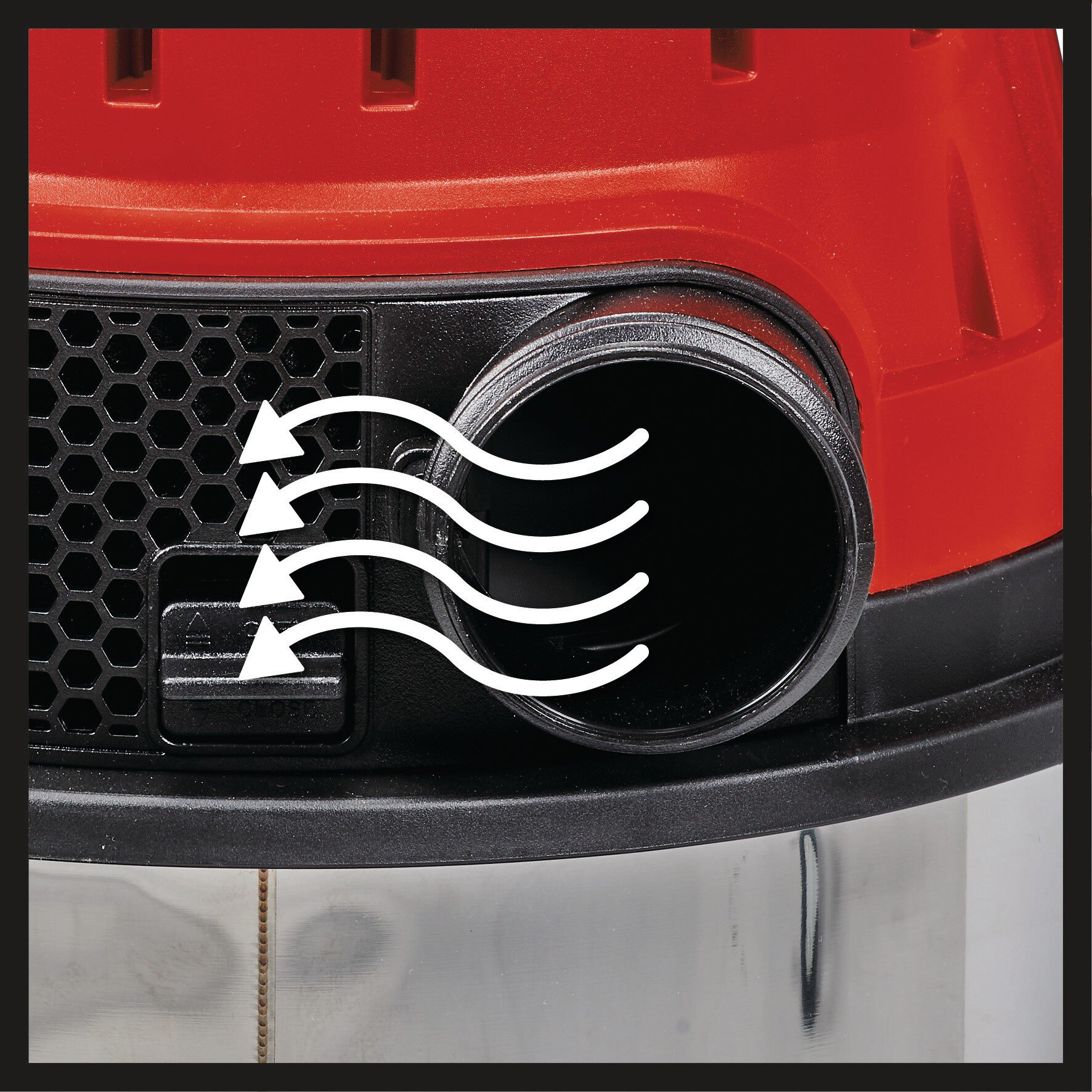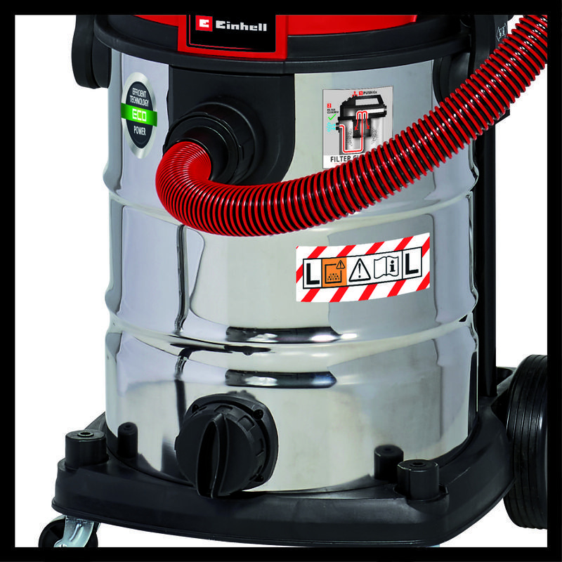 Vysavač na mokré a suché vysávání Einhell TE-VC 2230 SACL je vysoce kvalitní, 1400W ECO vysavač prachové třídy L v souladu s Euro normami. Mokrý a suchý vysavač pracuje opatrně na všech typech voděodolných povrchů. Na rozdíl od čistého vysávání a vytírání čistí vysavač na mokré a suché vysávání do hloubky a důkladně a je dokonalým doplňkem standardních domácích čisticích zařízení pro silné, odolné a hluboké znečištění. Díky filtraci jemných prachových částic je mokro-suchý vysavač vhodný zejména pro alergiky. Systém čištění filtru obnovuje sací výkon. Sací výkon je plynule měnitelný prostřednictvím regulace otáček. Mokrosuchý vysavač je také praktickým pomocníkem pro ambiciózní kutily pro úklidové práce na stavbě, v dílně nebo v hobby místnosti: Integrovaná zásuvka pro automatické zařízení (230 voltů, max. 2 000 wattů) pro připojení elektrického nářadí pro sektor kutilů. Robustní nerezová nerezová nádoba pojme 30 litrů. Ventil pro odvod vody podporuje snadné vypouštění nasáté vody. Velká kola a kolečka, stejně jako rukojeť vozíku, zajišťují snadnou přepravu, zatímco navíječ kabelu a držák sací trubky jsou integrovány do krytu. Praktický držák příslušenství drží trysky na dosah a slouží k přehlednému uložení široké škály příslušenství. Součástí dodávky je teleskopická trubice z nerezové oceli (Ø 36 mm) s regulátorem vzduchu, 3 metry odolná plastová sací hadice (Ø 36 mm), velká kombinace, štěrbinová hubice a hubice na čalounění a také HEPA skládaný filtr, pěnový filtr a fleecový sáček.