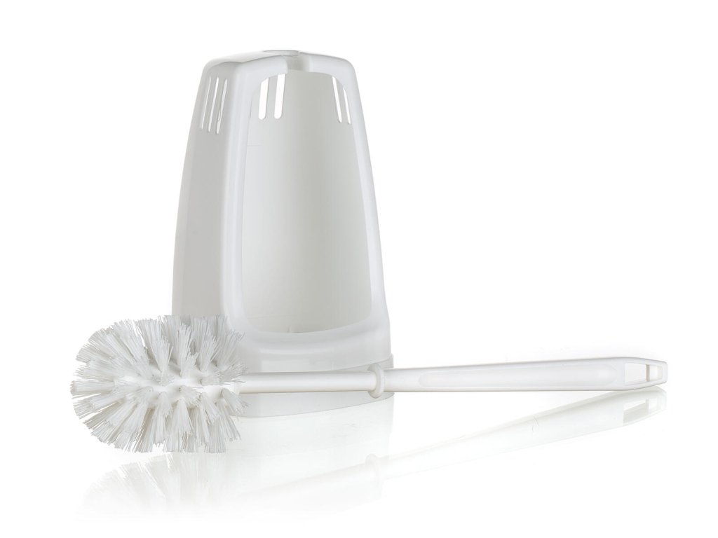 WC kartáč má plastové těleso, syntetická vlákna, průměr hlavy 7 cm, včetně plastového držáku.
