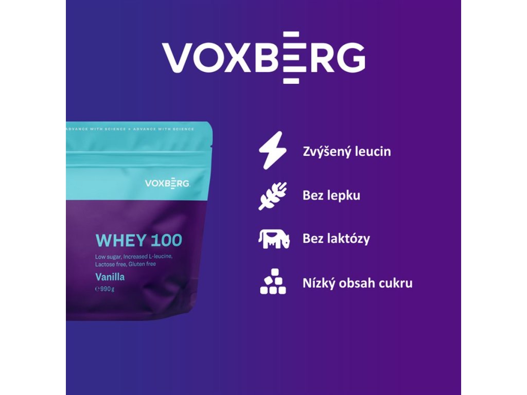 Výkonný syrovátkový protein bez laktózy a lepku, který je ideální pro každého, kdo hledá spolehlivý zdroj bílkovin pro podporu růstu svalů a regeneraci. Voxberg® Whey 100 se vyznačuje optimalizovaným obsahem leucinu, esenciální aminokyseliny, která hraje klíčovou roli při podpoře biosyntézy bílkovin.